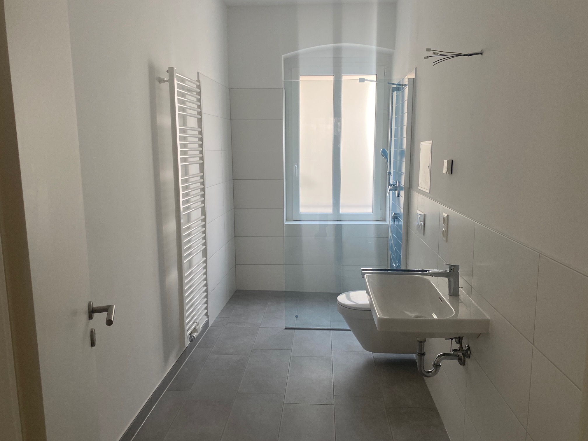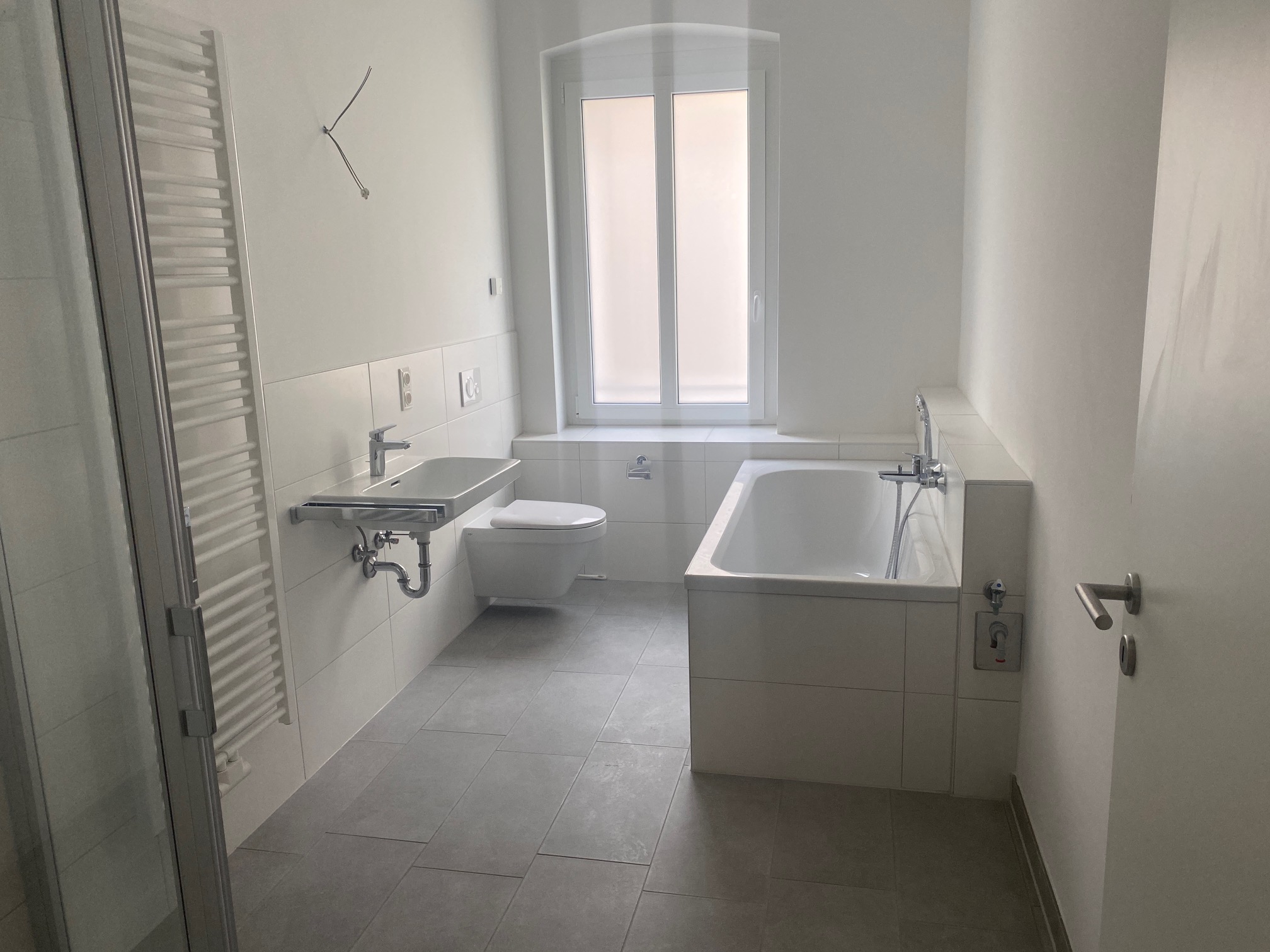 Die angebotene Wohnung liegt im 2. Obergeschoss des Hauses. Ein Designerbad wird modern mit einer bodengleichen Dusche mit Glasabtrennung, einer Wanne, einem Hänge-WC, einem Waschtisch und ausreichend Platz für Ihre Waschmaschine ausgestattet. Ein zweites Bad verfügt ebenfalls über eine bodengleiche Dusche, einen Waschtisch und ein WC. Zudem stehen Ihnen zwei Balkone zur Verfügung. Einer ist von dem großzügigen Ess- und Wohnbereich aus zu begehen, der andere über das Elternschlafzimmer. Alle Wände wurden gespachtelt und weiß gestrichen.