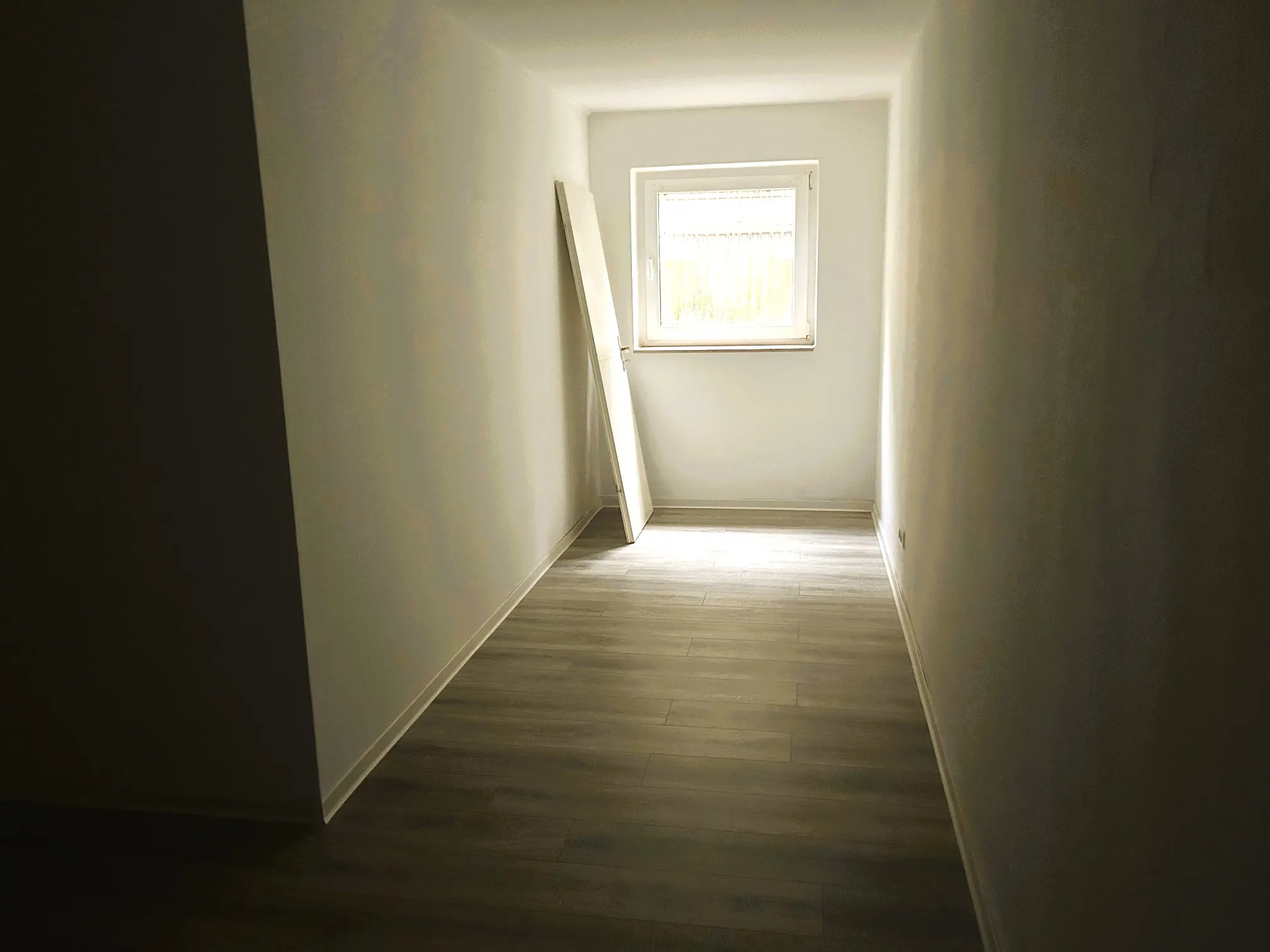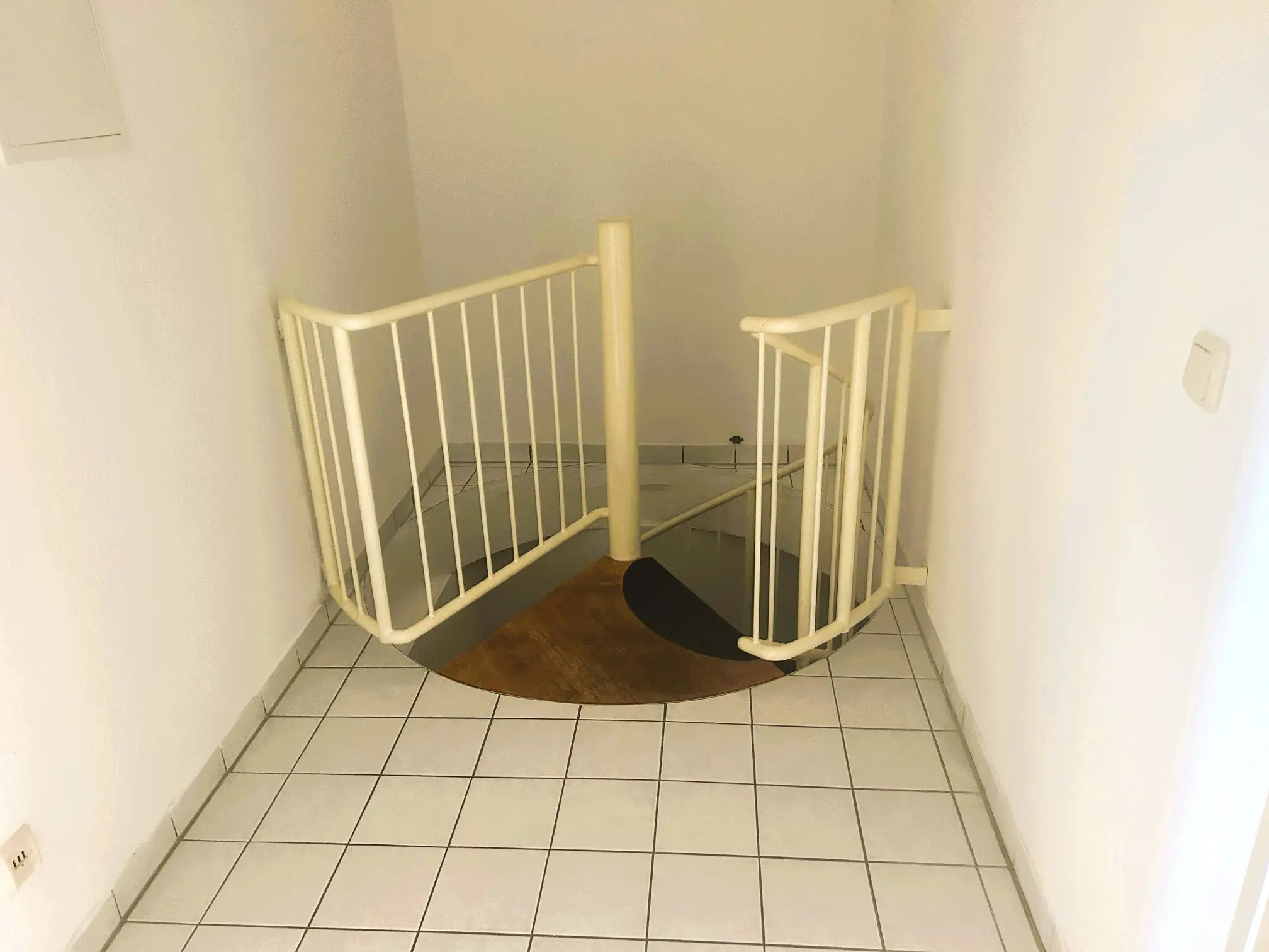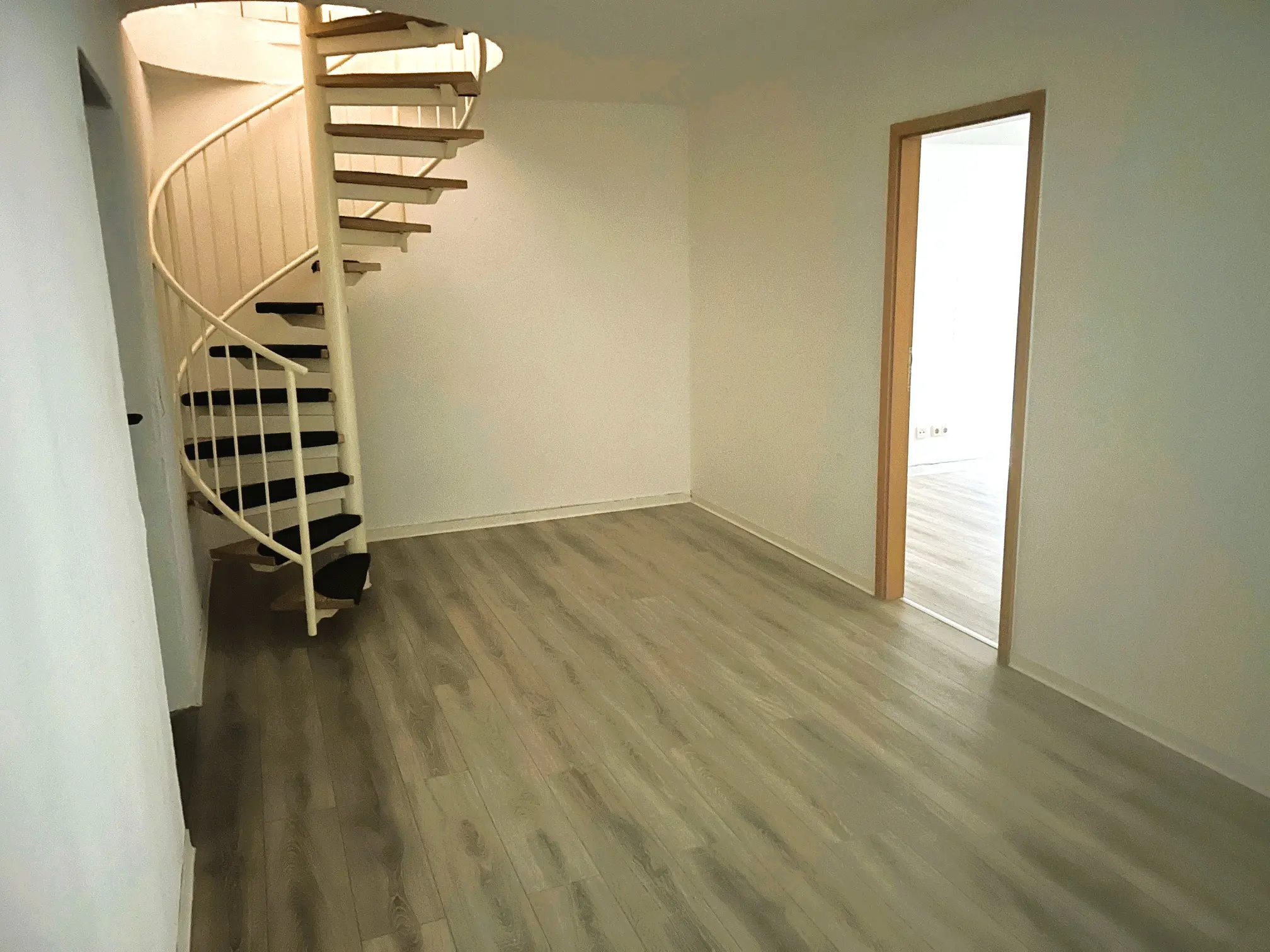 Die Wohnung überzeugt mit einem ansprechenden Laminatboden und weiß gestrichenen Raufaserwänden, die eine helle und freundliche Wohnatmosphäre schaffen. Vom Wohnbereich aus gelangt man auf die Terrasse, die zusätzlichen Raum zum Entspannen bietet. Das innenliegende Badezimmer ist mit einer Badewanne ausgestattet und verfügt über Platz für eine Waschmaschine. Eine elegante Glastür trennt den Wohnbereich und unterstreicht das offene Wohnkonzept. Über eine Wendeltreppe gelangt man in das Schlafzimmer sowie in einen angrenzenden Arbeitsbereich/Diele. Abgerundet wird das Angebot durch eine separate, kompakte Küche mit praktischer Raumaufteilung.