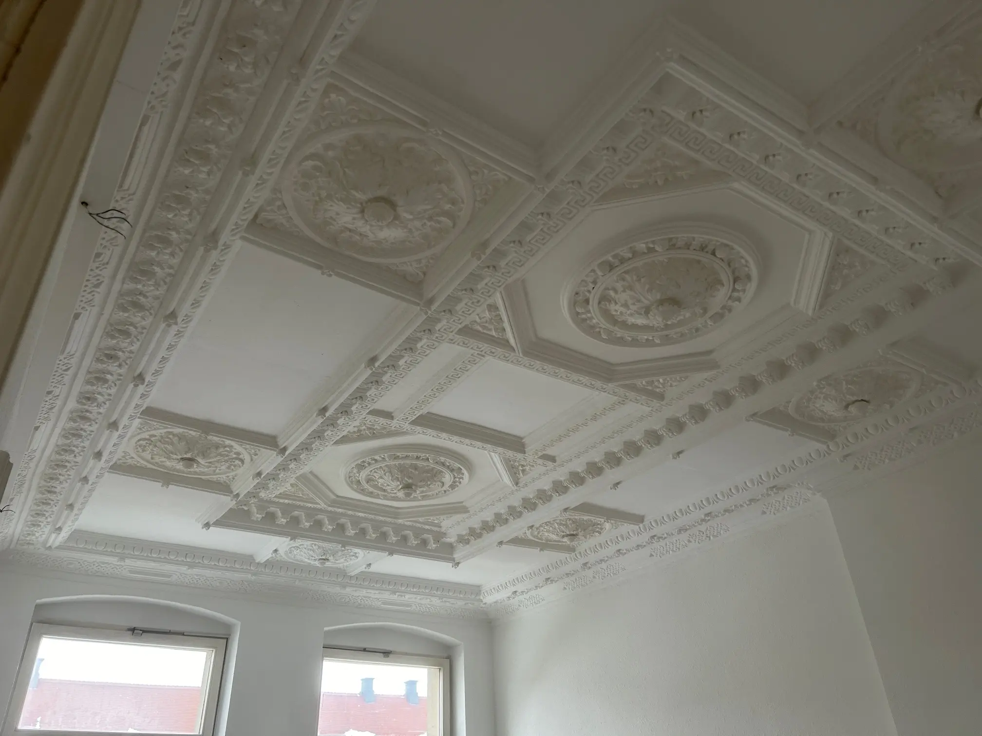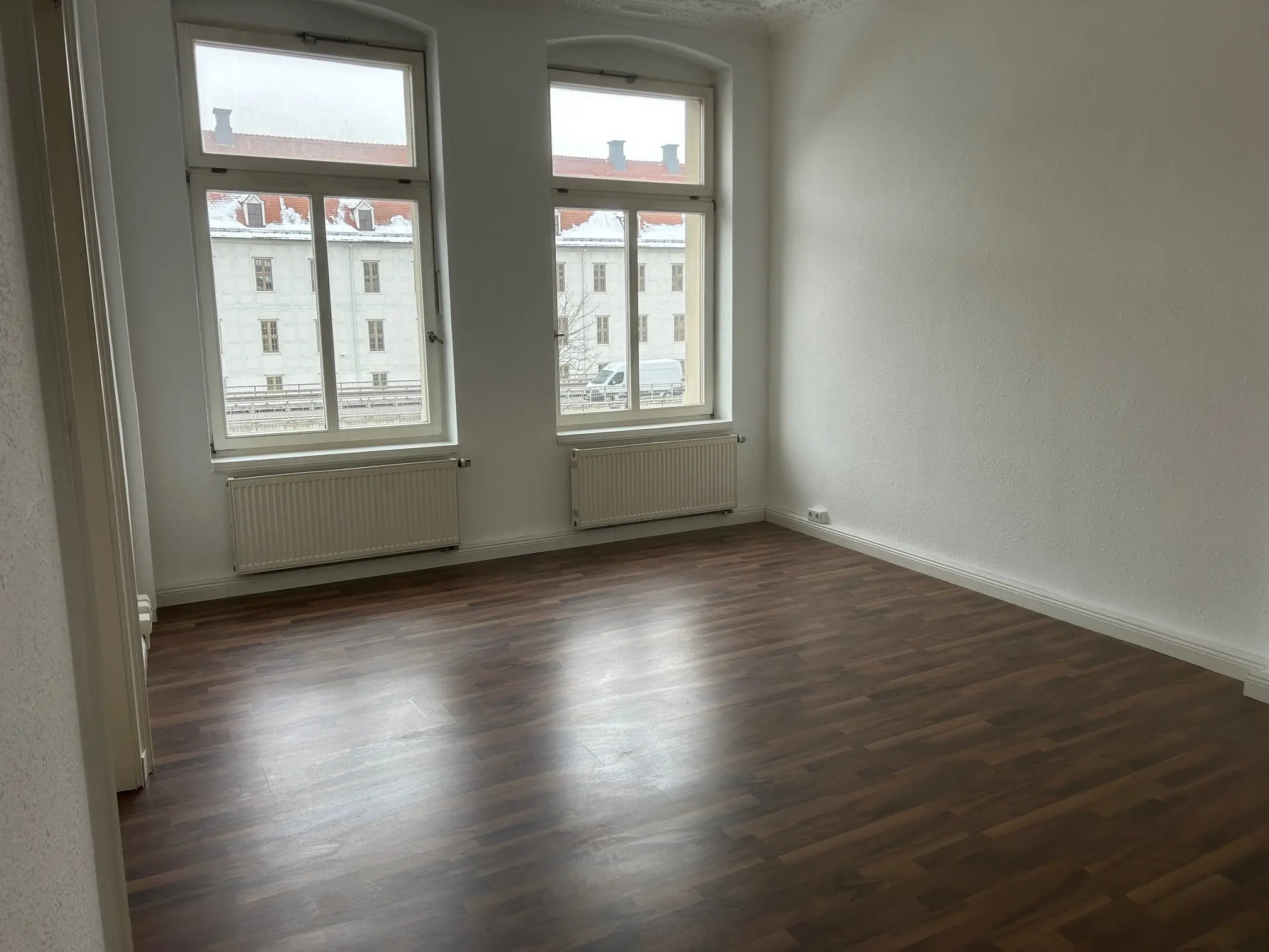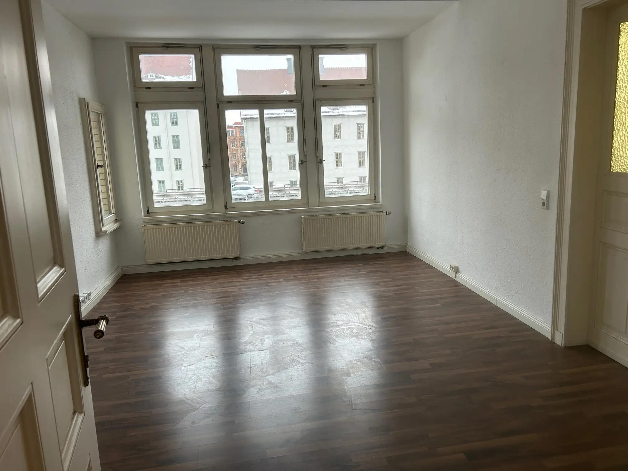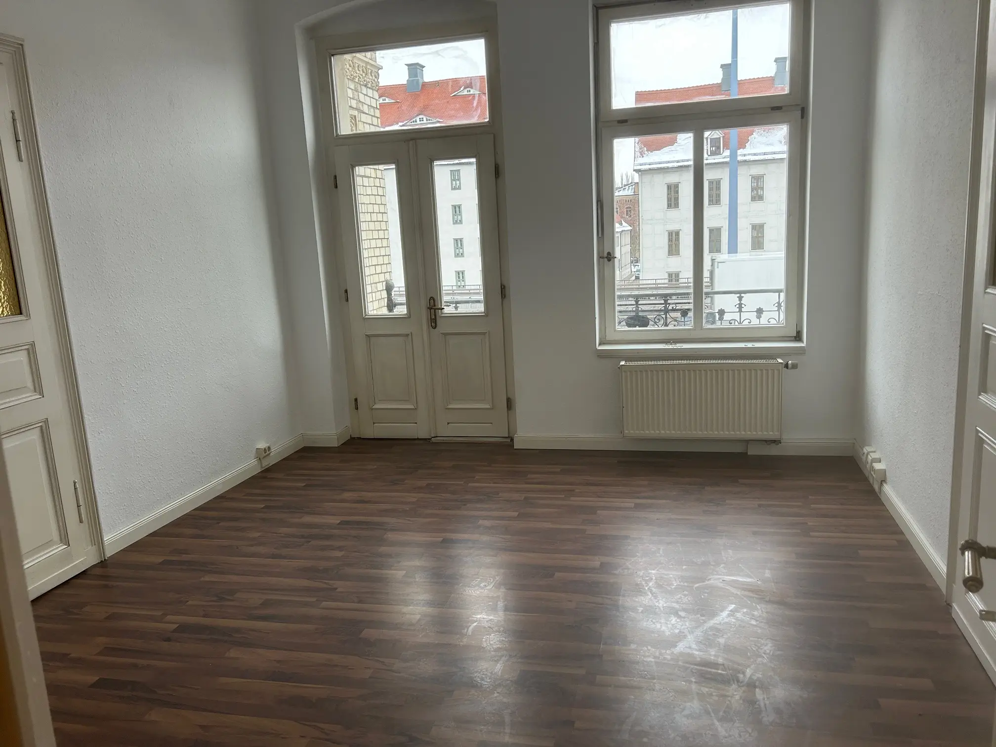 Die ca. 151 m² große Wohnung verbindet gepflegten Wohnkomfort mit dem besonderen Flair eines historischen Gebäudes. In den Wohnräumen sorgen Laminatböden und originale Holzinntüren für eine warme, authentische Atmosphäre, während weiße Raufaserwände ein helles und zeitloses Ambiente schaffen. Ein Balkon erweitert den Wohnraum ins Freie, und die historischen Holzfenster fügen sich harmonisch in das Altbauensemble ein. In einem der Räume setzt aufwendiger Stuck zudem einen stilvollen architektonischen Akzent.