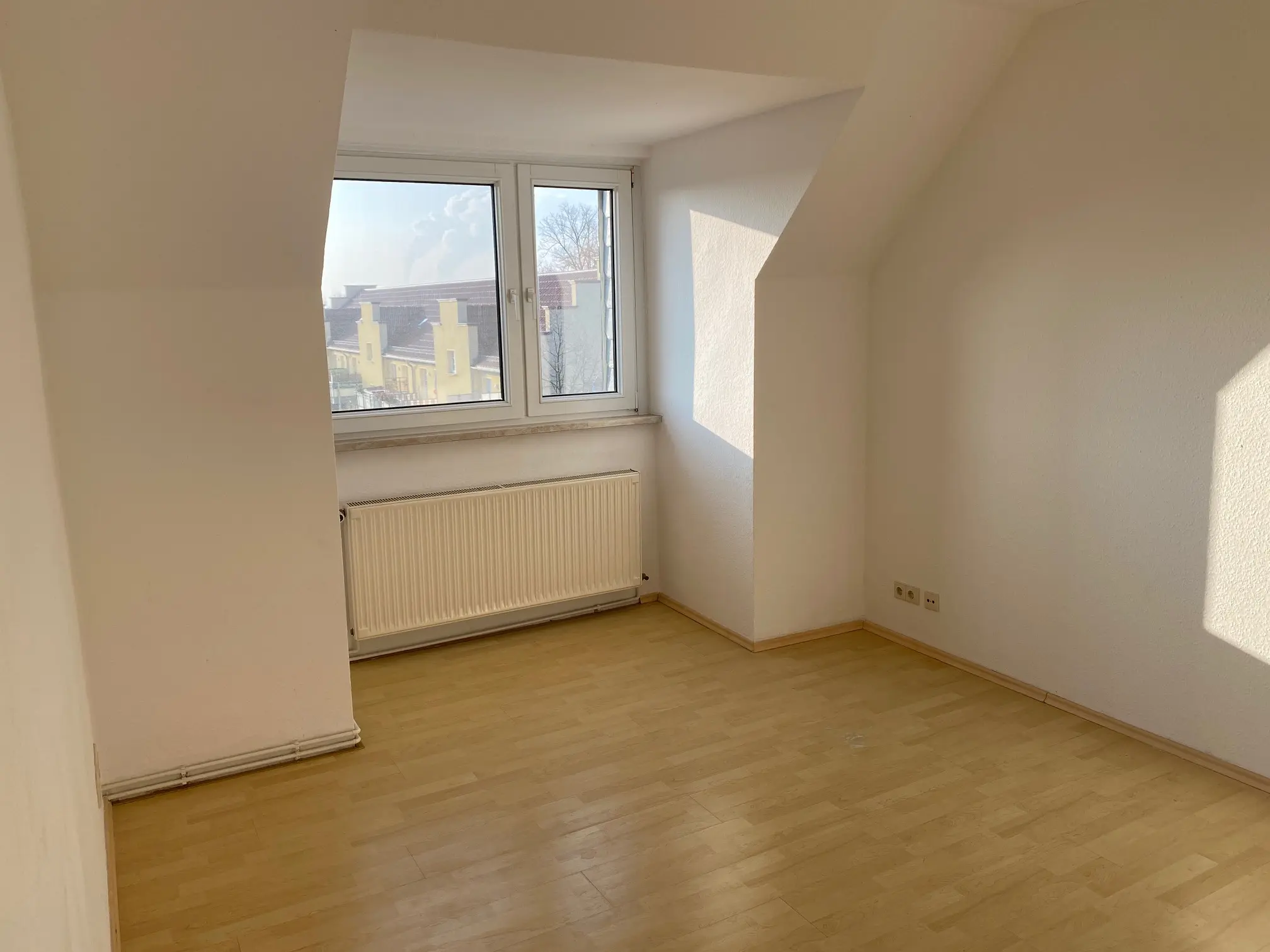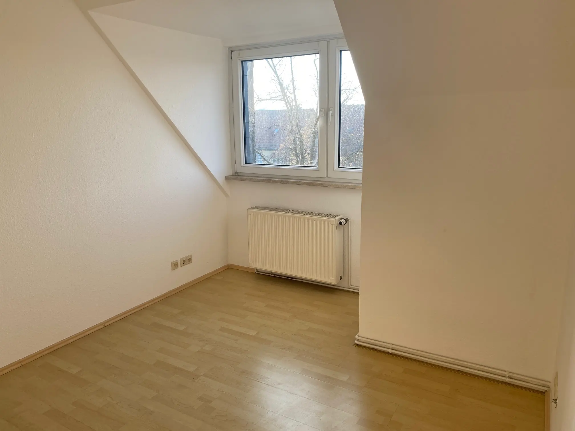 Die Wohnung ist wunderschön geschnitten und aufgrund ihrer Lage sehr hell. Von der Wohnküche aus gelangt man in das Schlafzimmer der Wohnung. Die anderen Räume sind vom Flur aus erreichbar. Die Fußböden der Wohnung sind mit Laminat und Fliesen ausgestattet. Die Fassettendecke des Flurs wurde mit Spots versehen. Das geräumige Tageslichtbad verfügt über eine Badewanne, eine Dusche, einen Handtuchheizkörper, ein Bidet, zwei Waschtische und Platz für Ihre Waschmaschine.