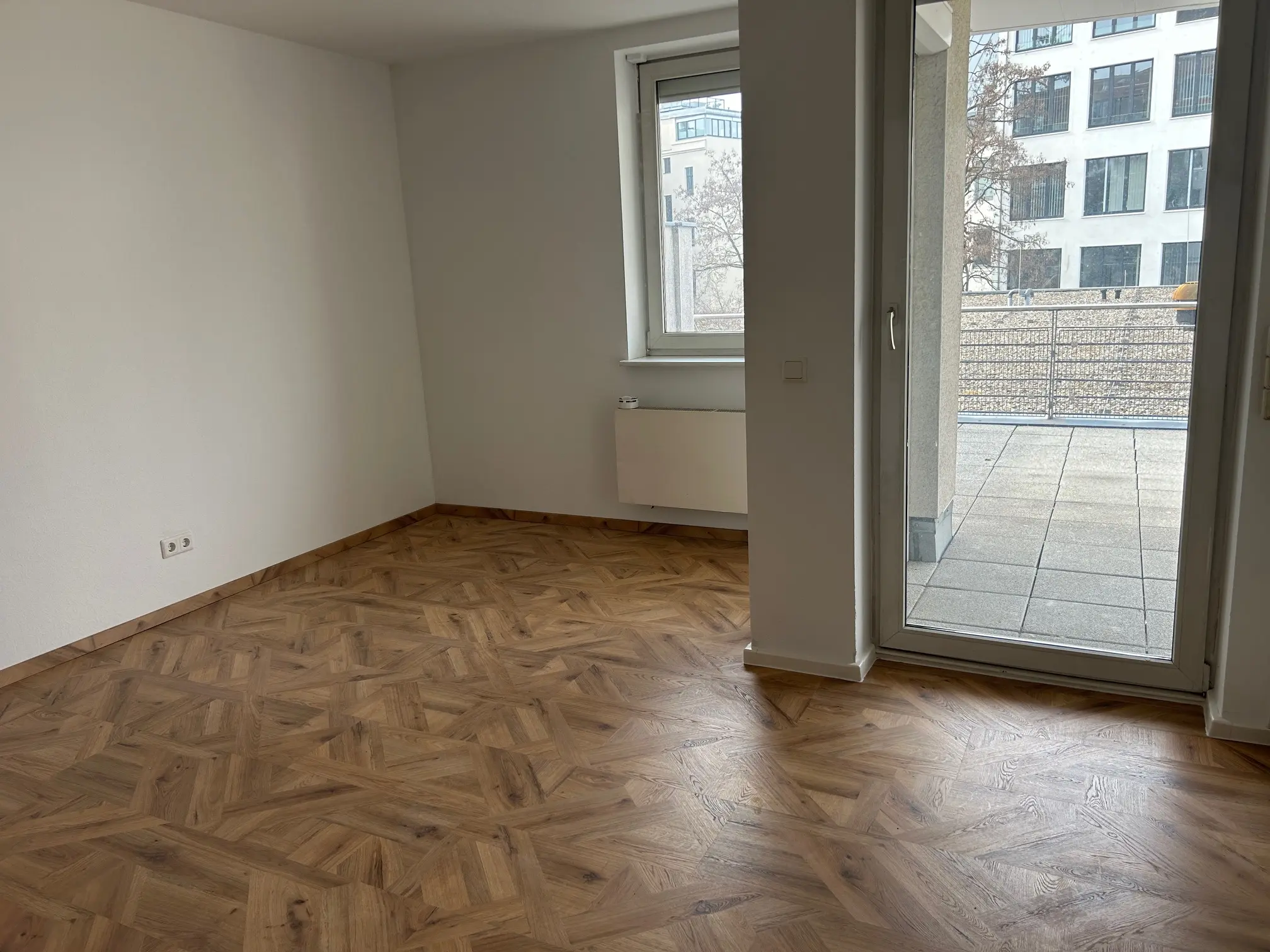 Die 2-Raumwohnung überzeugt durch eine moderne und hochwertige Ausstattung. Zeitgemäßer Vinylboden sowie weiß gestaltete Raufasertapeten schaffen ein helles und freundliches Wohnambiente. Ein besonderes Highlight ist die großzügige Terrasse, die sowohl vom Wohn- als auch vom Schlafzimmer aus begehbar ist und zusätzlichen Wohnkomfort im Freien bietet. Elektrische Außenrollos sorgen für Bequemlichkeit und optimalen Sicht- und Sonnenschutz.