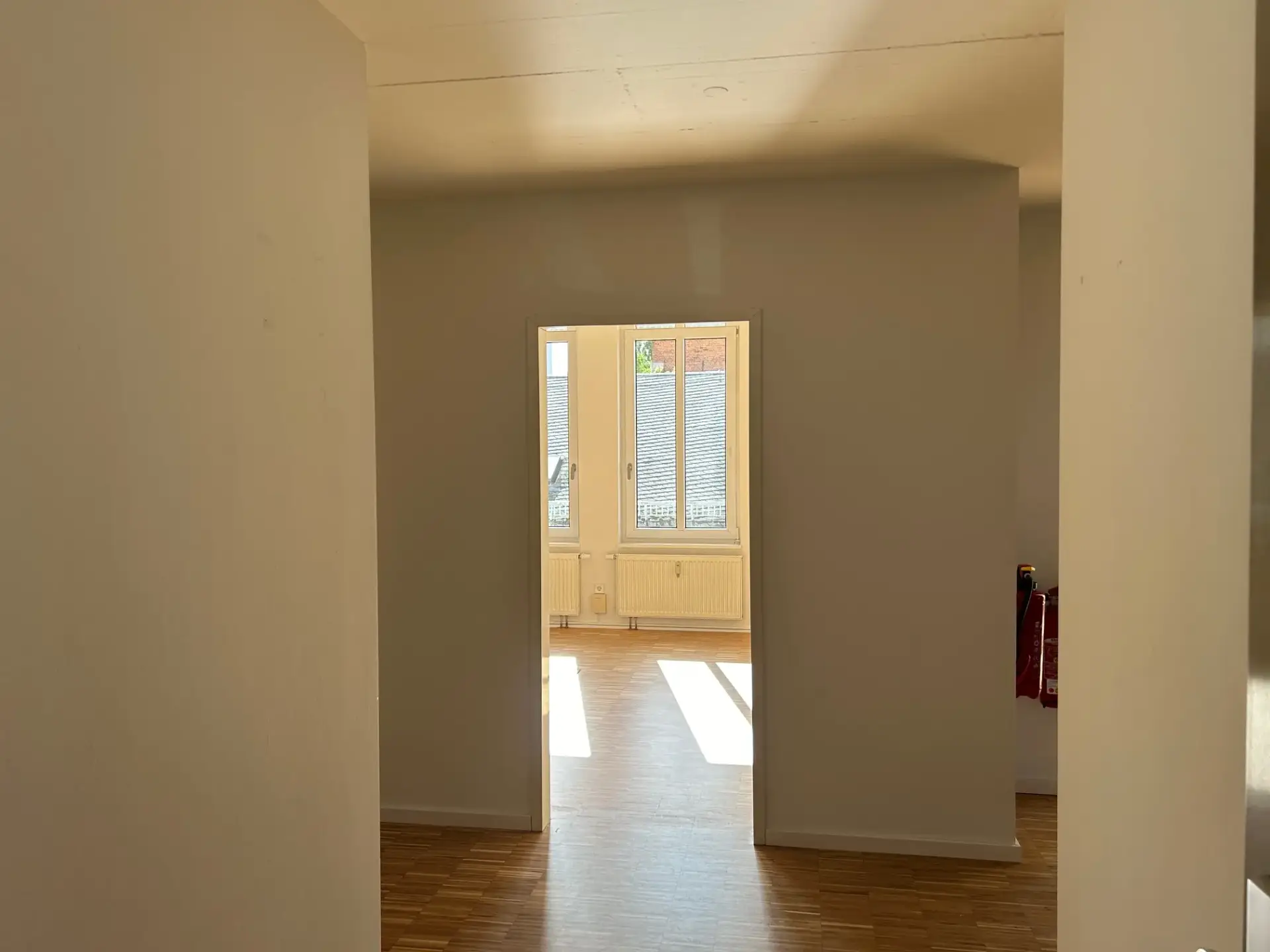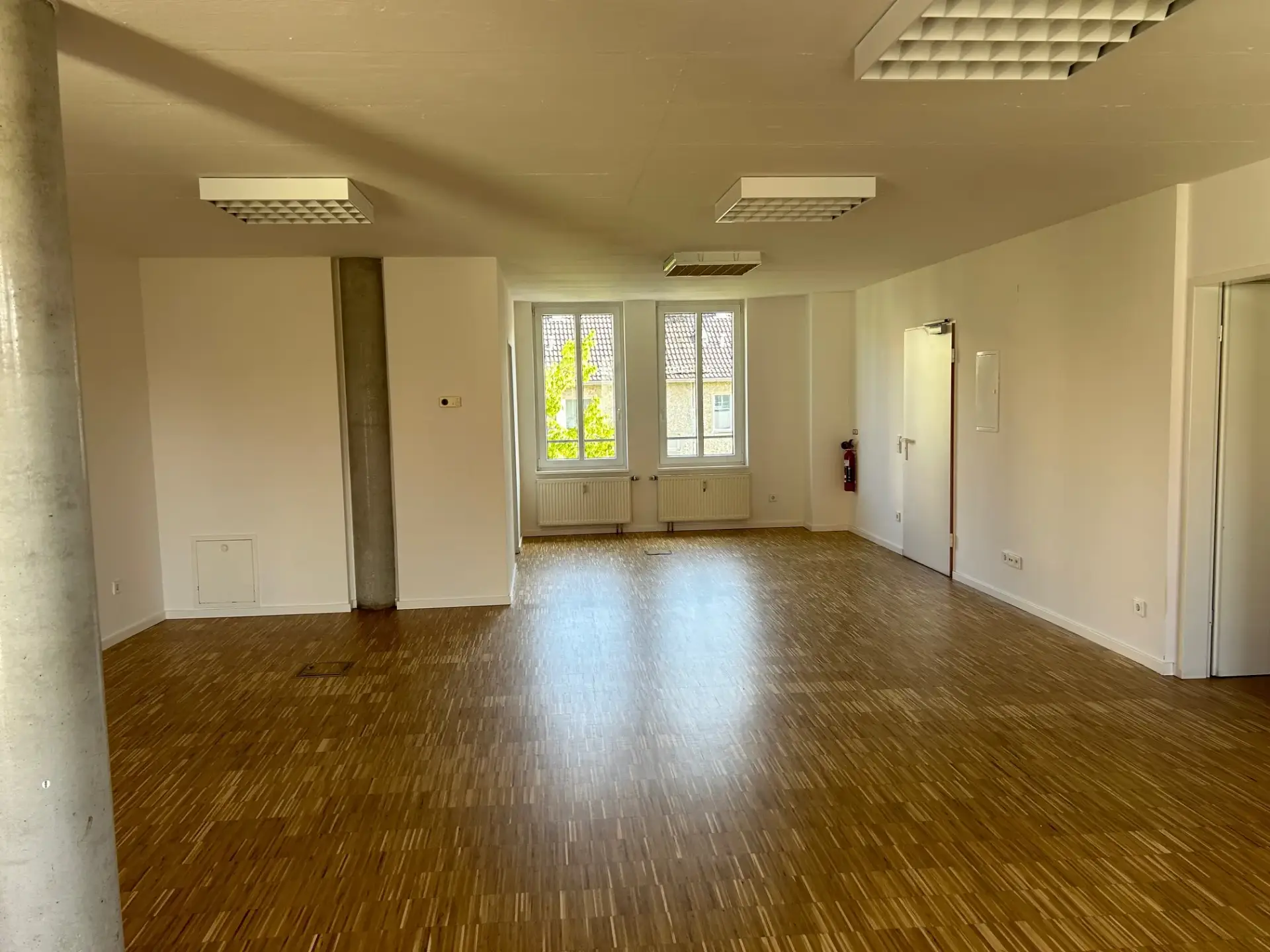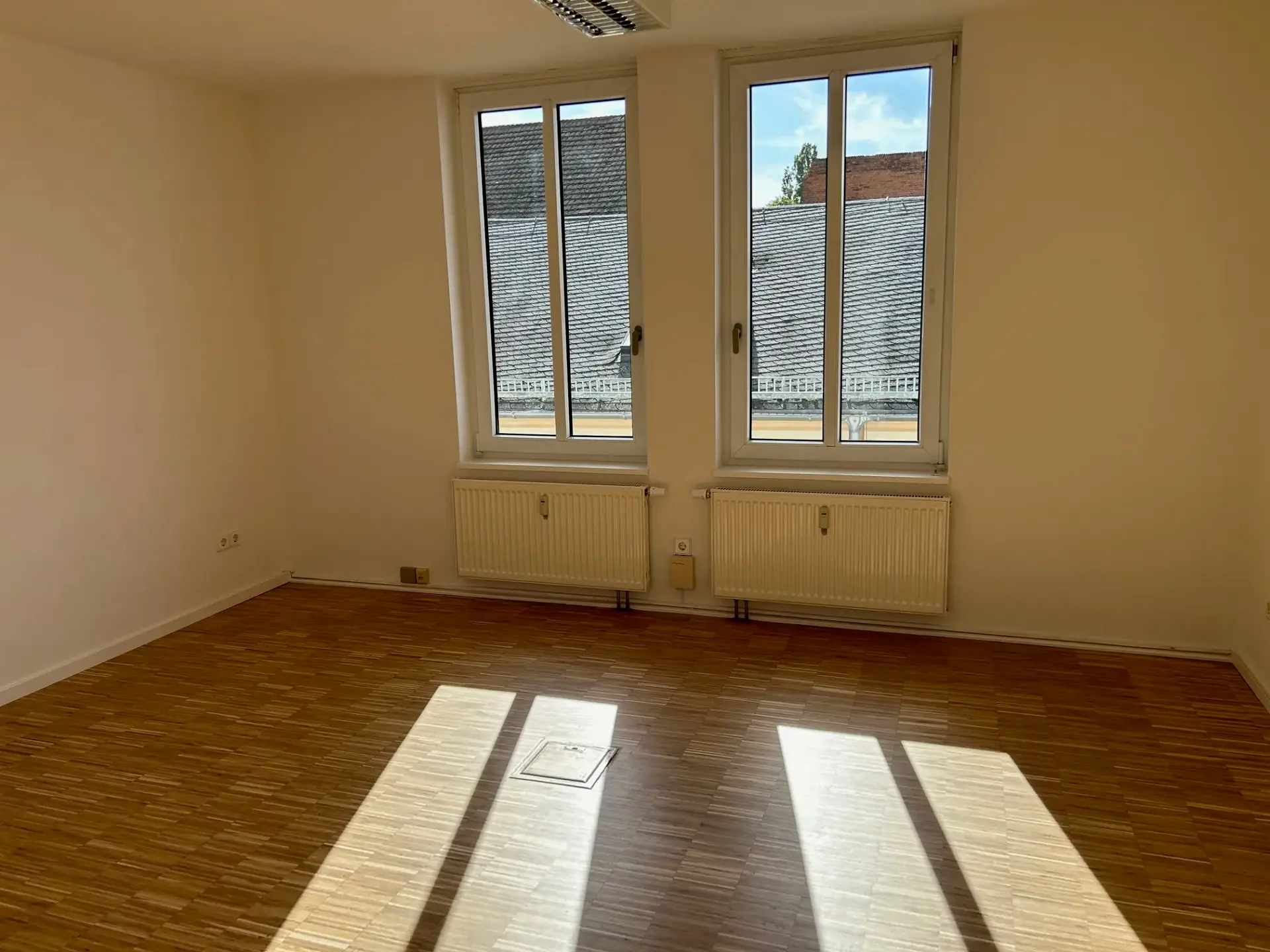 Alle Räume sind mit hochwertigem Parkett ausgestattet, das vor Einzug neu geschliffen und versiegelt wurde. PVC-Fenster sorgen für gute Wärmedämmung und helle Räume, während die gespachtelten und gestrichenen Wände einen modernen Gesamteindruck vermitteln. Praktische Steckdosen im Fußboden ermöglichen eine flexible Positionierung von Schreibtischen und technischem Equipment.