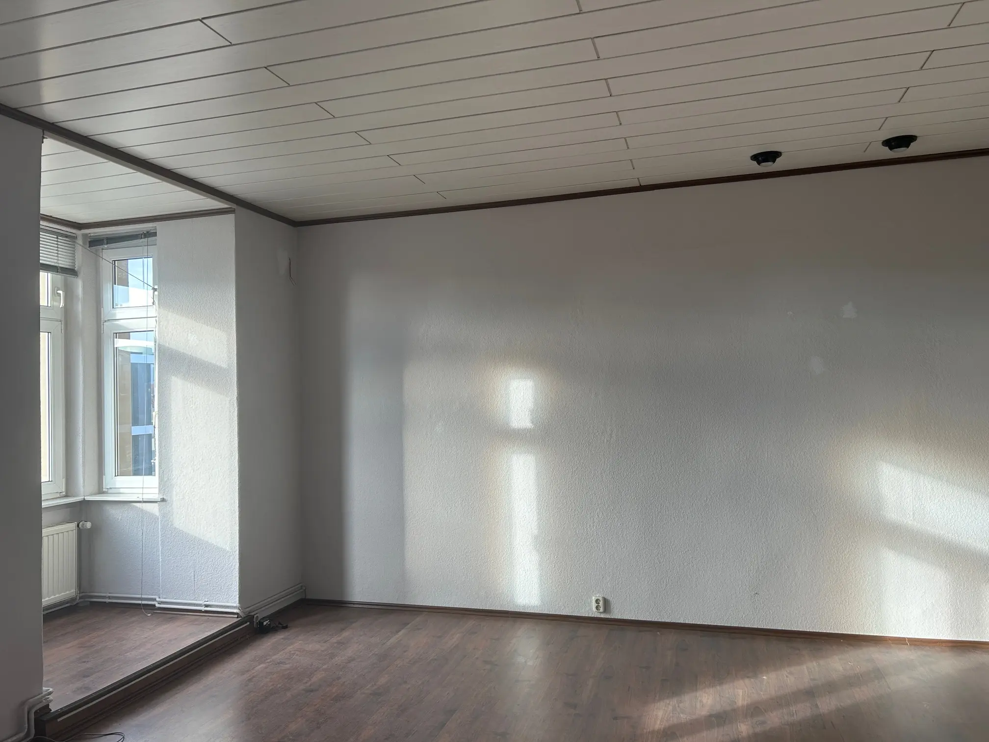 Praktische Zusatzräume wie ein Hauswirtschaftsraum (HWR) und ein Abstellraum (ASR) bieten wertvollen Stauraum. Abgerundet wird das Gesamtbild durch dekorative Deckenpaneele, die der Wohnung eine warme und einladende Atmosphäre verleihen.