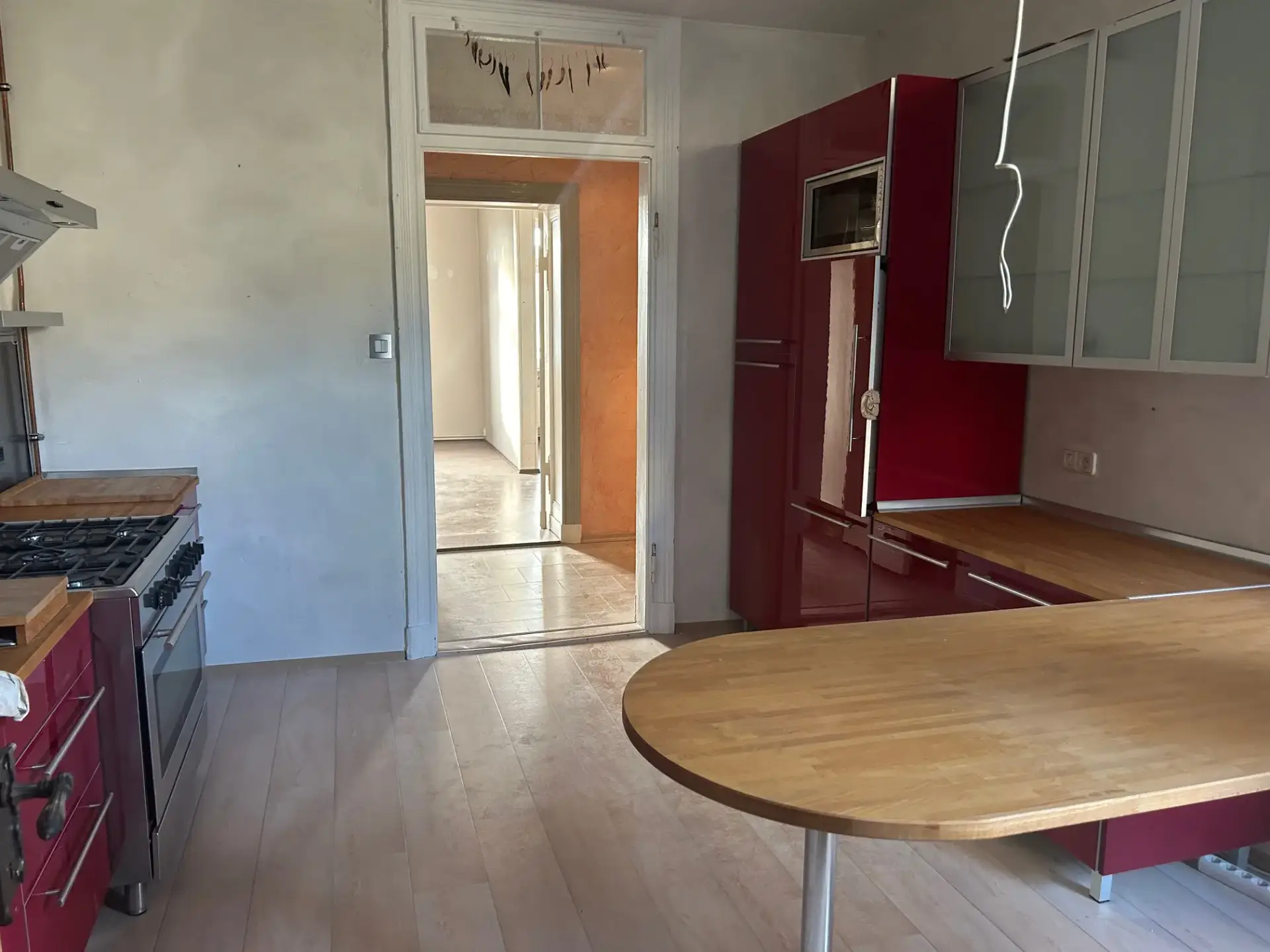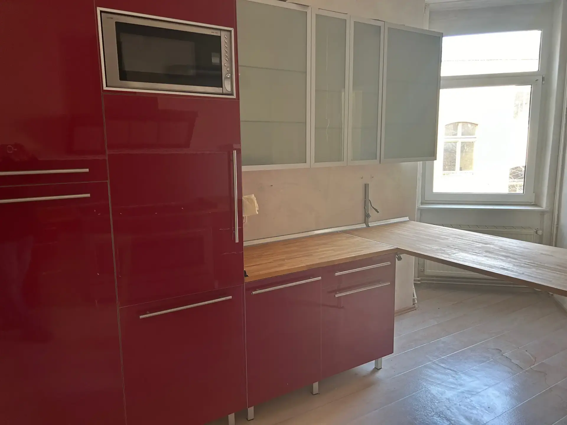Eine Einbauküche mit Gasherd, integrierter Grillplatte, Kühlkombination und Mikrowelle ist vorhanden, gehört jedoch nicht zur Mietsache. Charmante altbautypische Elemente wie uhrische Türen sowie ein separates WC unterstreichen den individuellen Stil der Wohnung. Ein Highlight ist der Erker im großzügigen Wohnzimmer, der für ein helles und freundliches Raumgefühl sorgt.