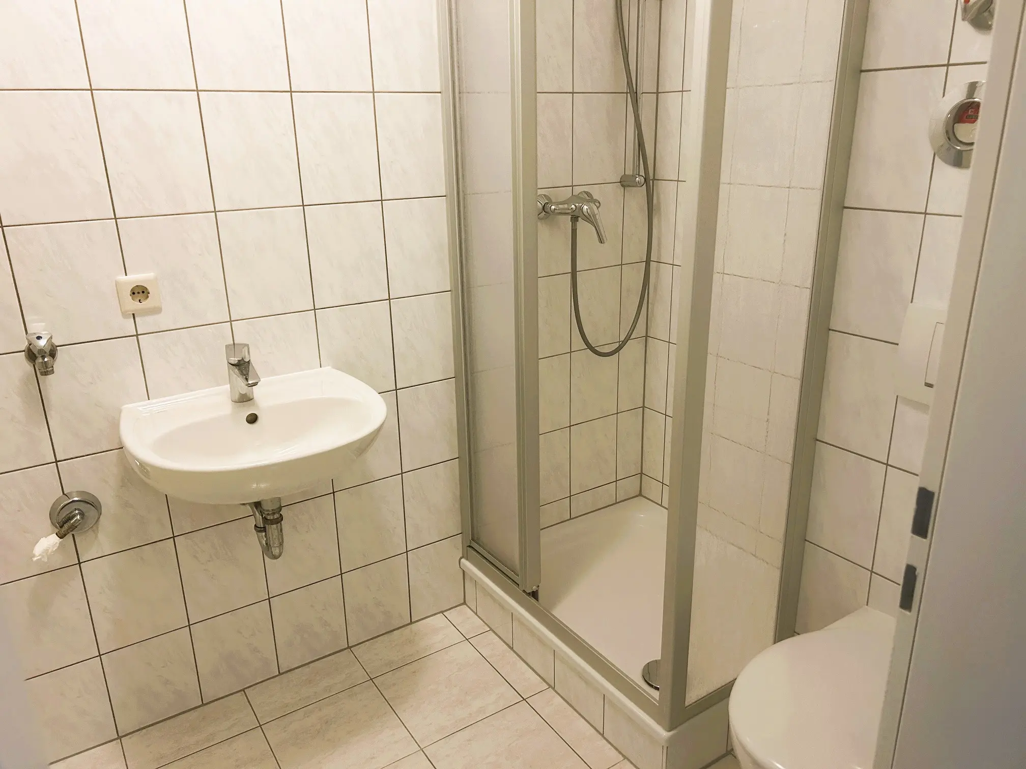 Freuen Sie sich auf eine charmante, bezugsfertige 2-Raum-Wohnung im Hochparterre, die mit einer durchdachten Raumaufteilung überzeugt. Die Wohnräume sind mit modernem Designer-Vinylboden ausgestattet und schaffen ein stilvolles, zugleich pflegeleichtes Ambiente. Das innenliegende Bad mit Dusche bietet praktischerweise Platz für Ihre Waschmaschine. Die separate, kompakte Küche erreichen Sie über das ca. 15 m² große Wohnzimmer – ideal für kurze Wege im Alltag. Innenrollos an den Fenstern sind bereits vorhanden. Alle Wände sind mit weißer Raufasertapete gestaltet und bieten Ihnen eine helle, freundliche Grundlage für Ihre individuelle Einrichtung.