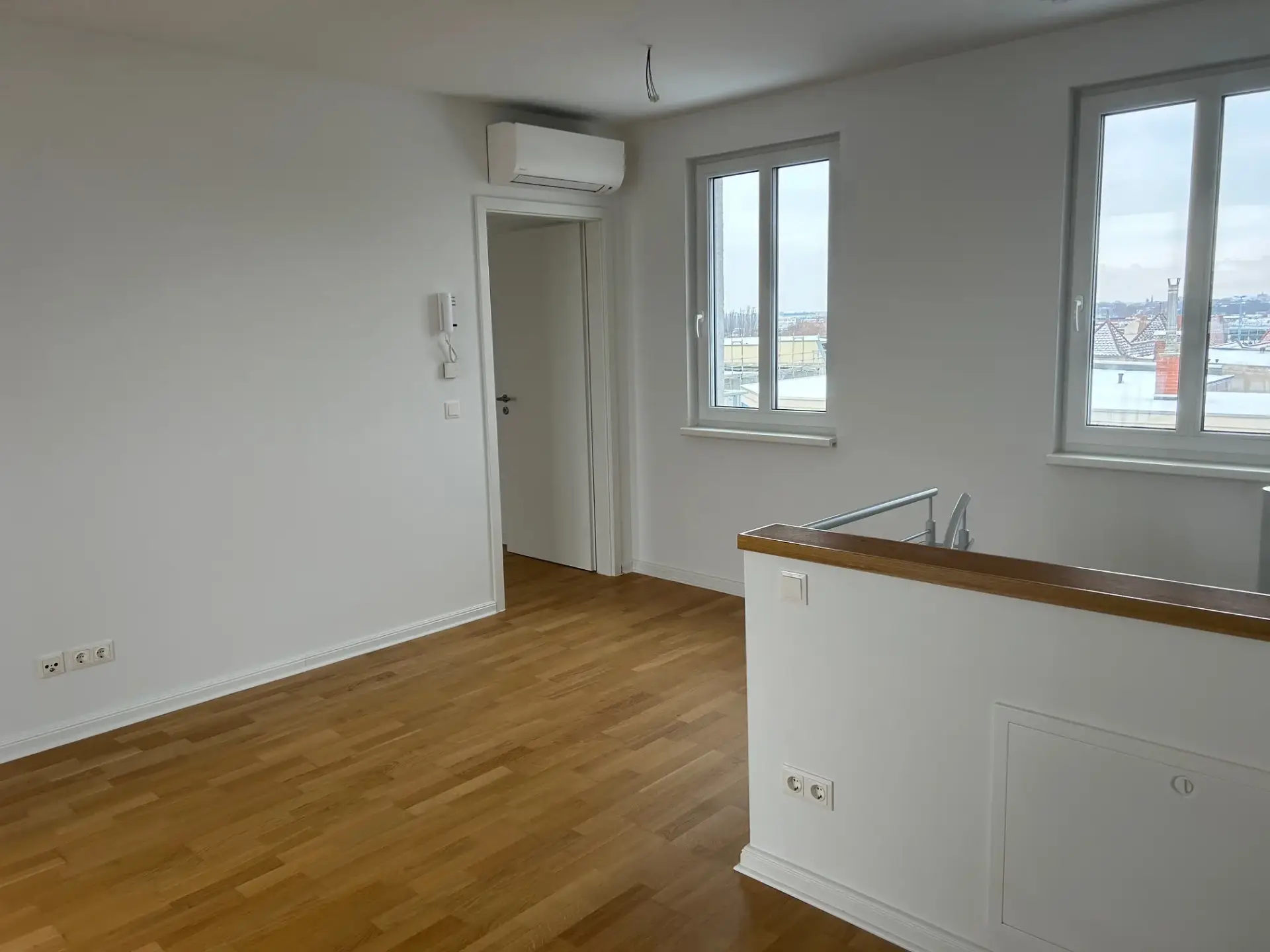 Genießen Sie sonnige Stunden und entspannte Ausblicke auf dem Balkon oder Ihrer privaten Dachterrasse – ein echtes Highlight dieser Wohnung. Für angenehme Temperaturen sorgt die auf der oberen Ebene integrierte Klimaanlage.