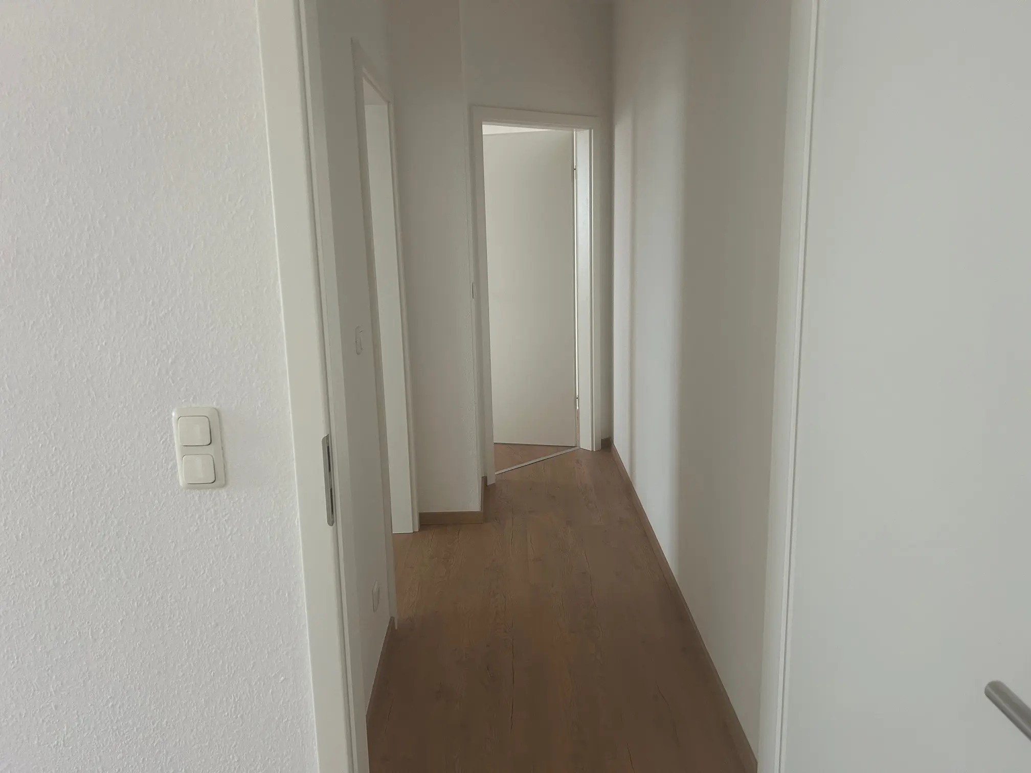 Sie betreten Ihr neues zu Hause und ein kleiner Vorflur führt sie zum innenliegen Bad mit Wanne, Platz für Waschmaschine, Trockner und diverse Regale oder Schränkchen, und Sie gelanegen in das Wohnzimmer, welches die Zentrale der Wohnung darstellt. Vom Wohnzimmer gelangen Sie in die separate Küche mit asureichend Paltz für einen Einbauküche und einen Tisch. Der Fußboden ist dort hell gefliest. Außerdem gelangen Sie vom Wohnzimmer in einen kleinen zweiten Verteilerflur mit Zuagng zum Kinder- bzw. Arbeitszimmer und Schlafzimmer mit Sichtbalken.
