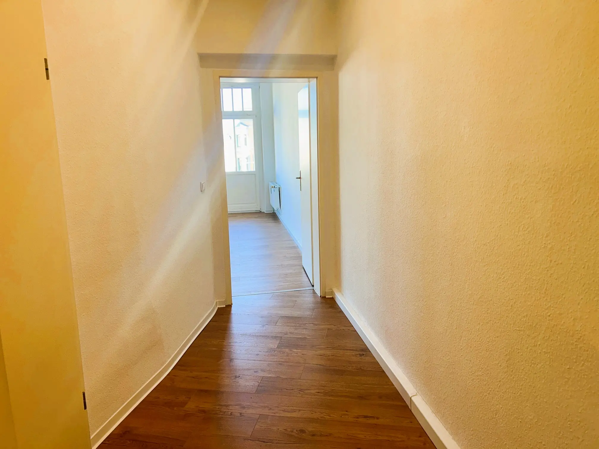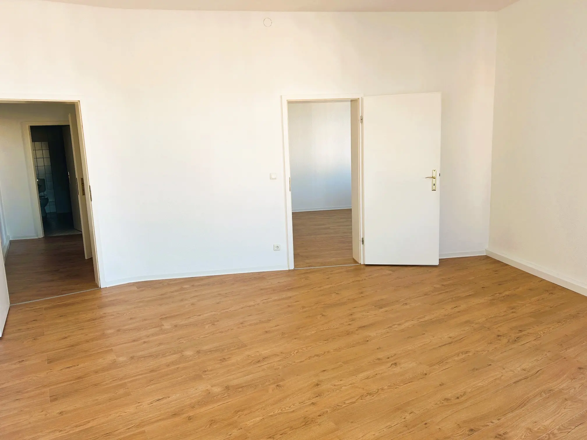 Diese helle, frisch renovierte 3-Raum-Wohnung überzeugt mit individuellem Charme, zwei Balkonen und einem runden Erker im Schlafzimmer. Neuer Designer-Vinylboden verleiht allen Wohnräumen eine zeitgemäße Eleganz.