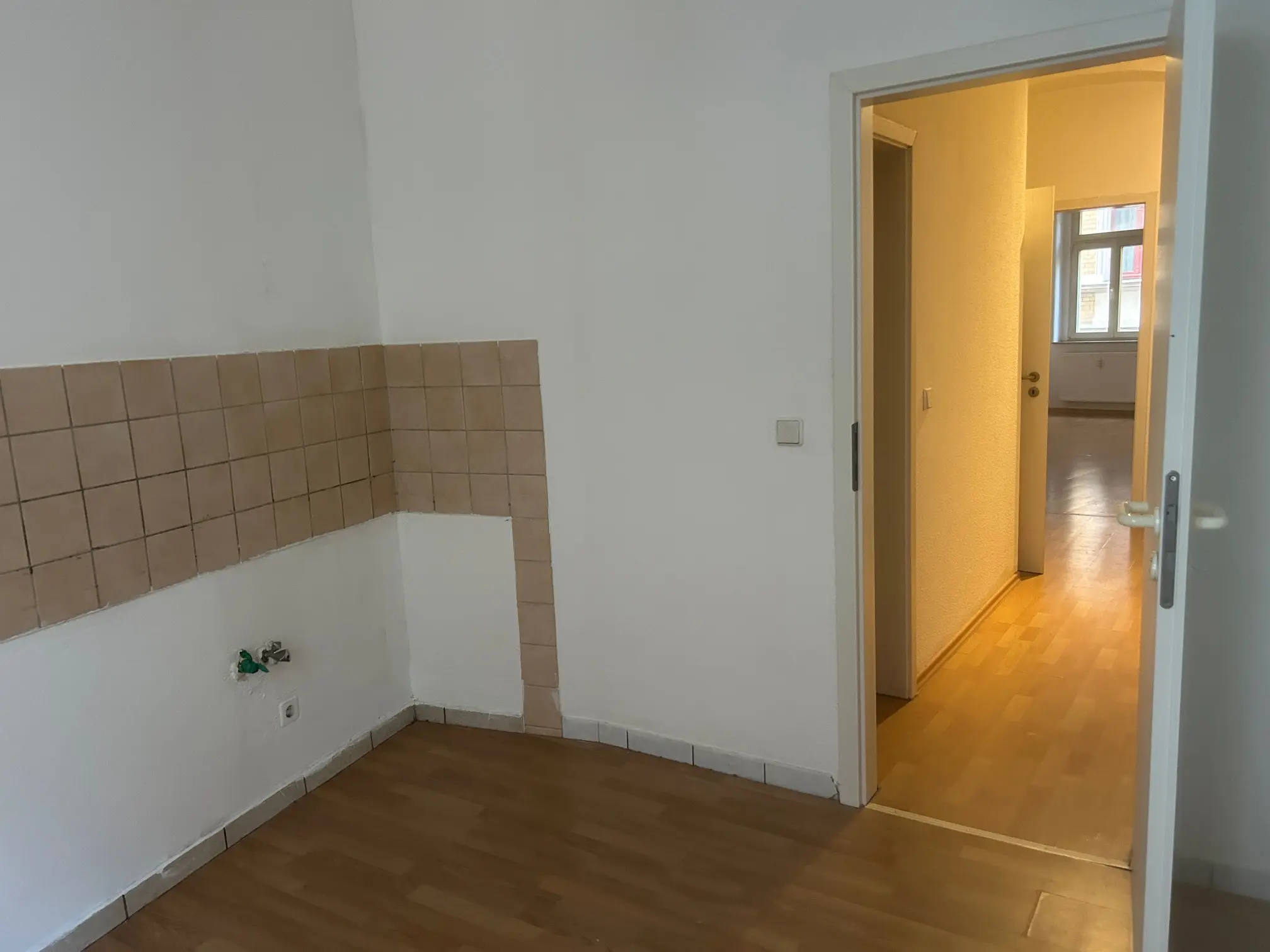 Die helle 2-Zimmer-Wohnung verfügt über einen klassischen Laminatboden sowie weiß gestrichene Raufasertapeten und bietet damit eine neutrale Grundlage für individuelle Einrichtungsideen. Die separate Küche bietet ausreichend Platz zum Kochen und Verstauen. Ein innenliegendes Badezimmer ist mit einer Badewanne ausgestattet. Zusätzlichen Stauraum bietet ein praktischer Abstellraum. Der Waschmaschinenanschluss befindet sich wahlweise in der Küche oder im Keller. Ein moderner Glasfaseranschluss sorgt für schnelles Internet und zeitgemäßen Wohnkomfort.