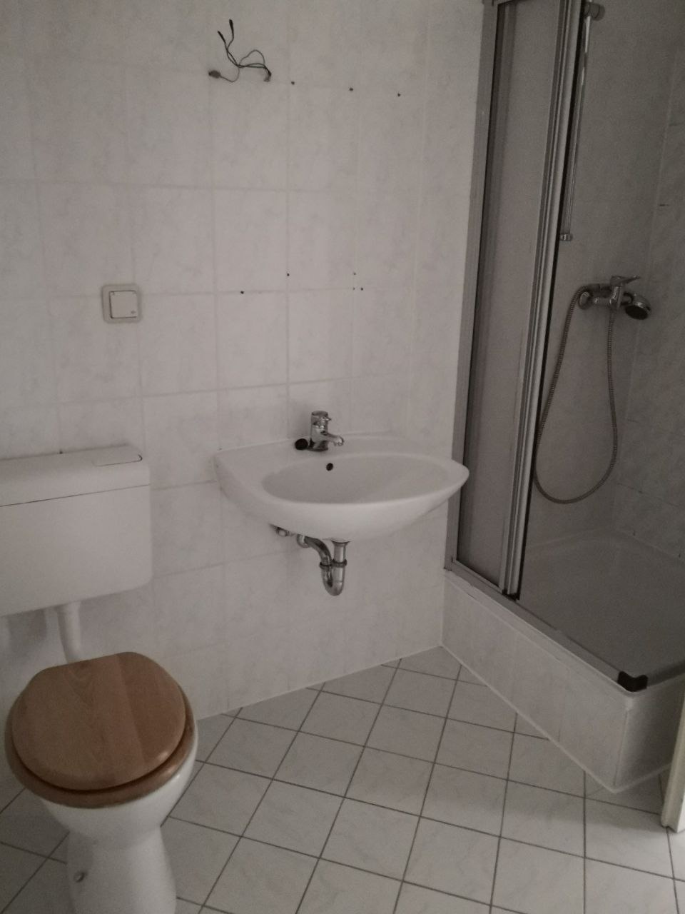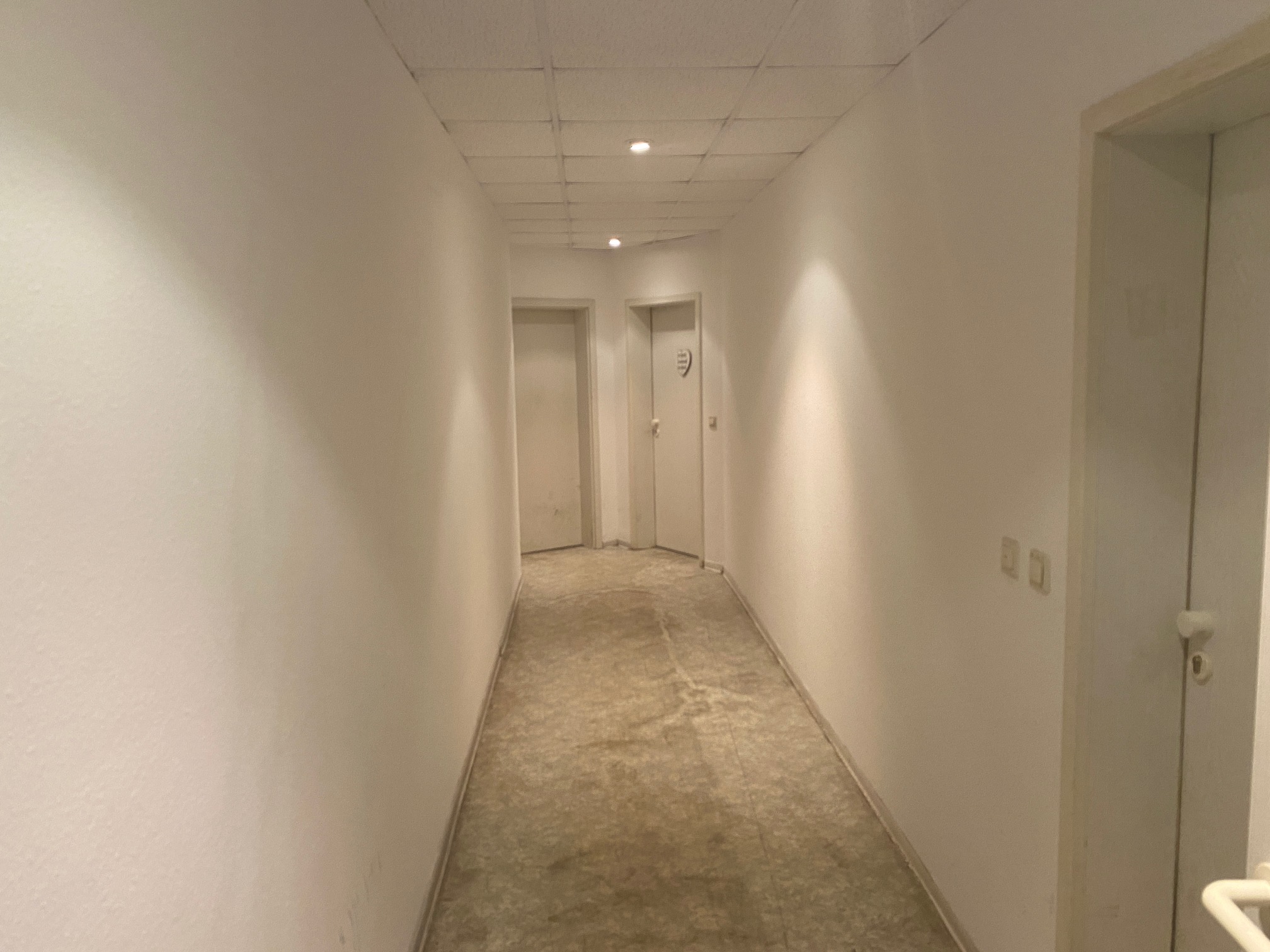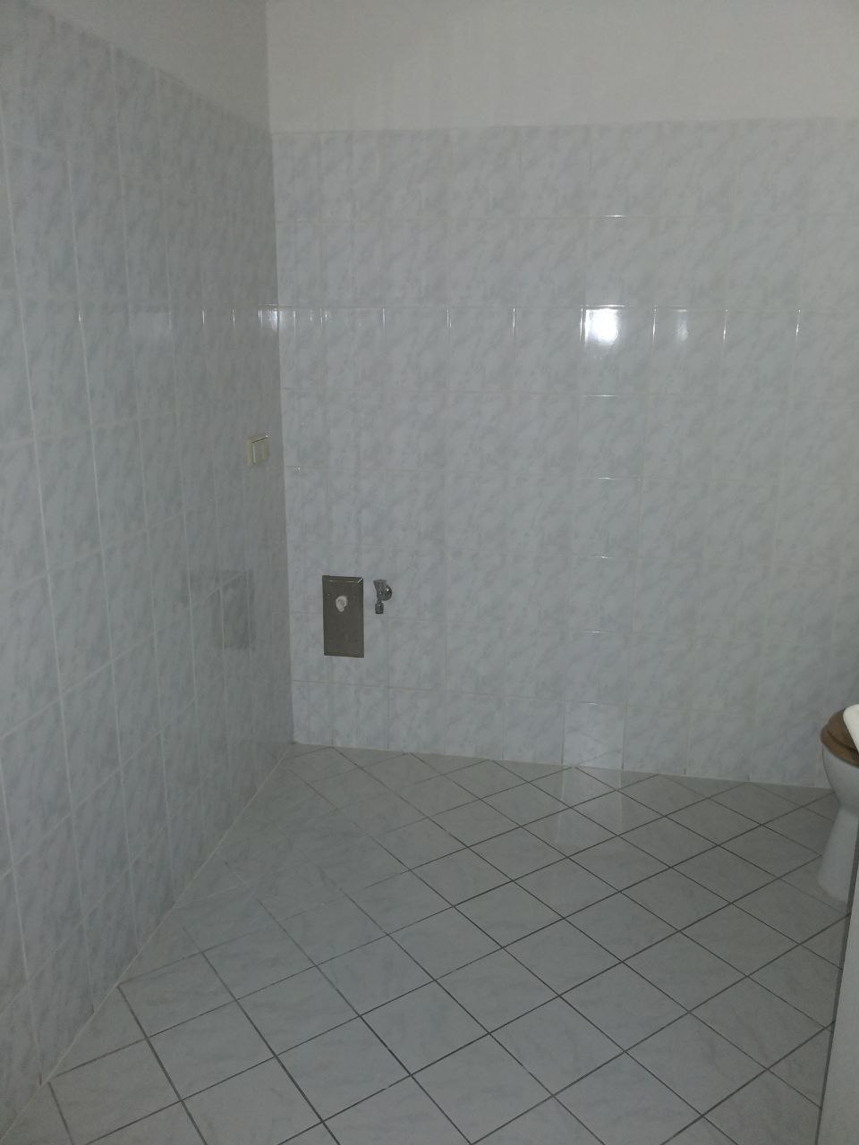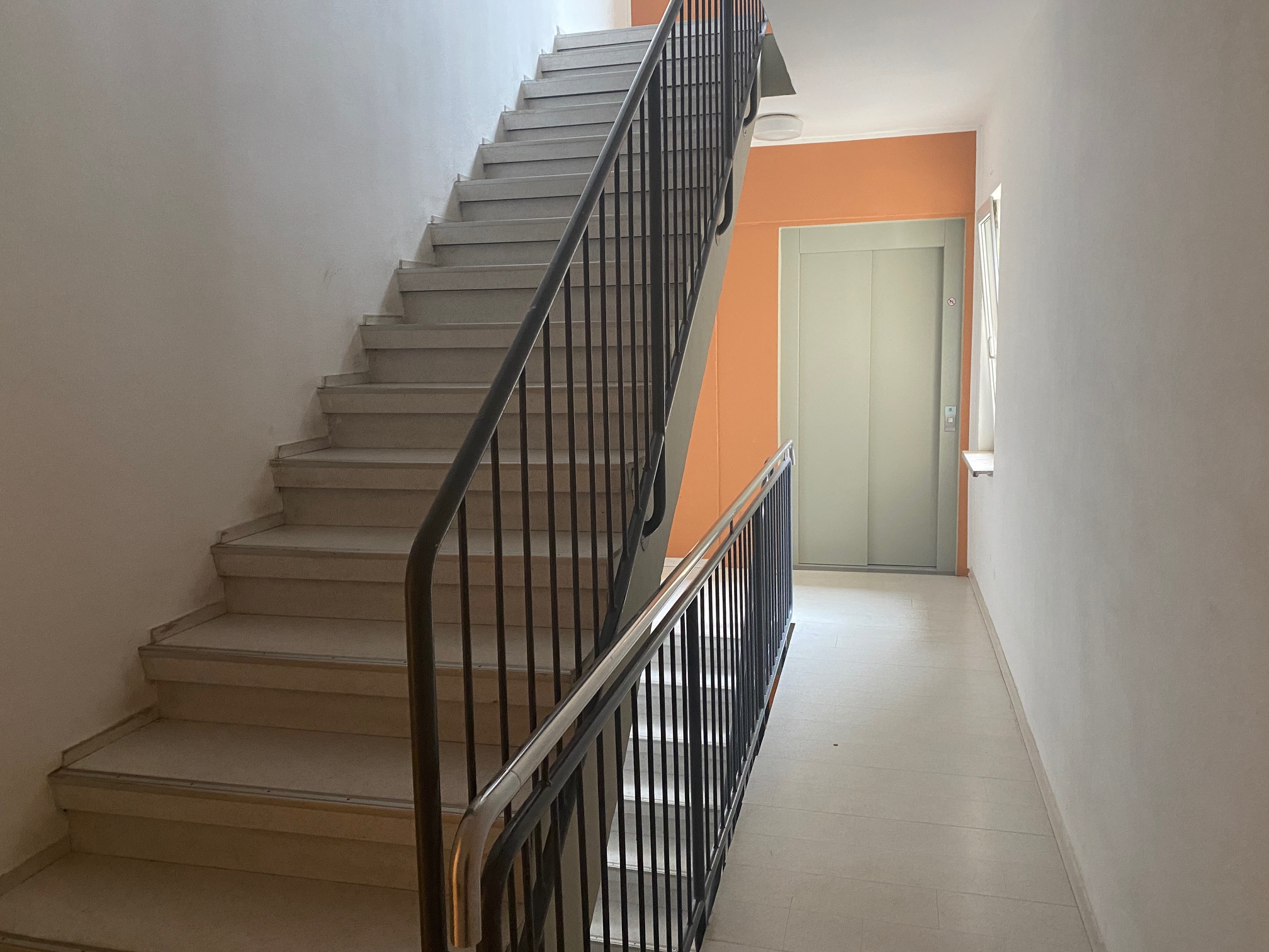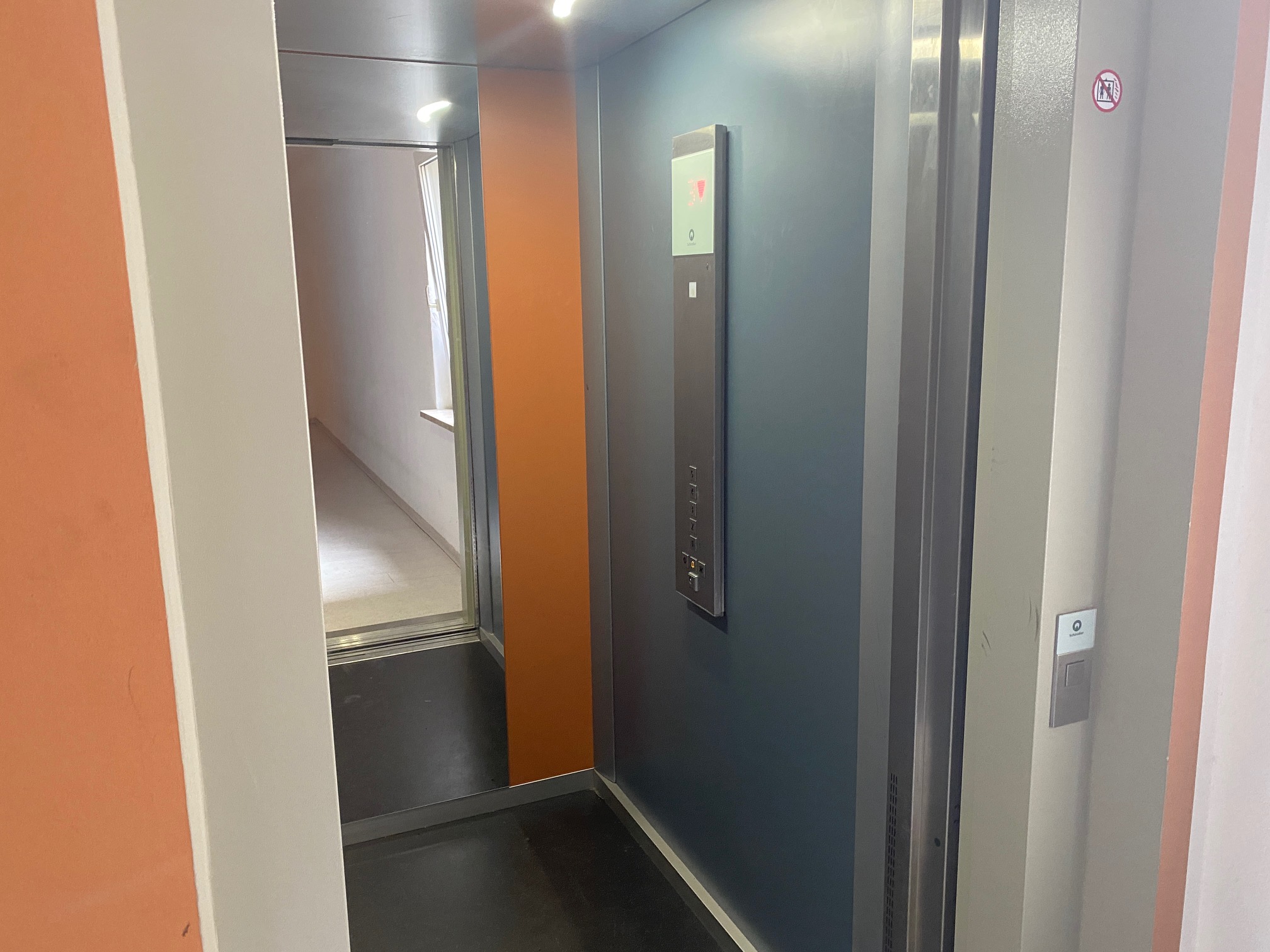 Das innenliegende Bad ist mit einer Dusche ausgestattet und bietet Platz für Waschmaschine sowie Regale. Weiße Raufasertapeten sorgen für ein helles, freundliches Wohnambiente. Eine Fußbodenheizung gewährleistet eine gleichmäßige und behagliche Wärmeverteilung. Ein Aufzug sorgt zusätzlich für komfortablen Zugang zur Wohnung.