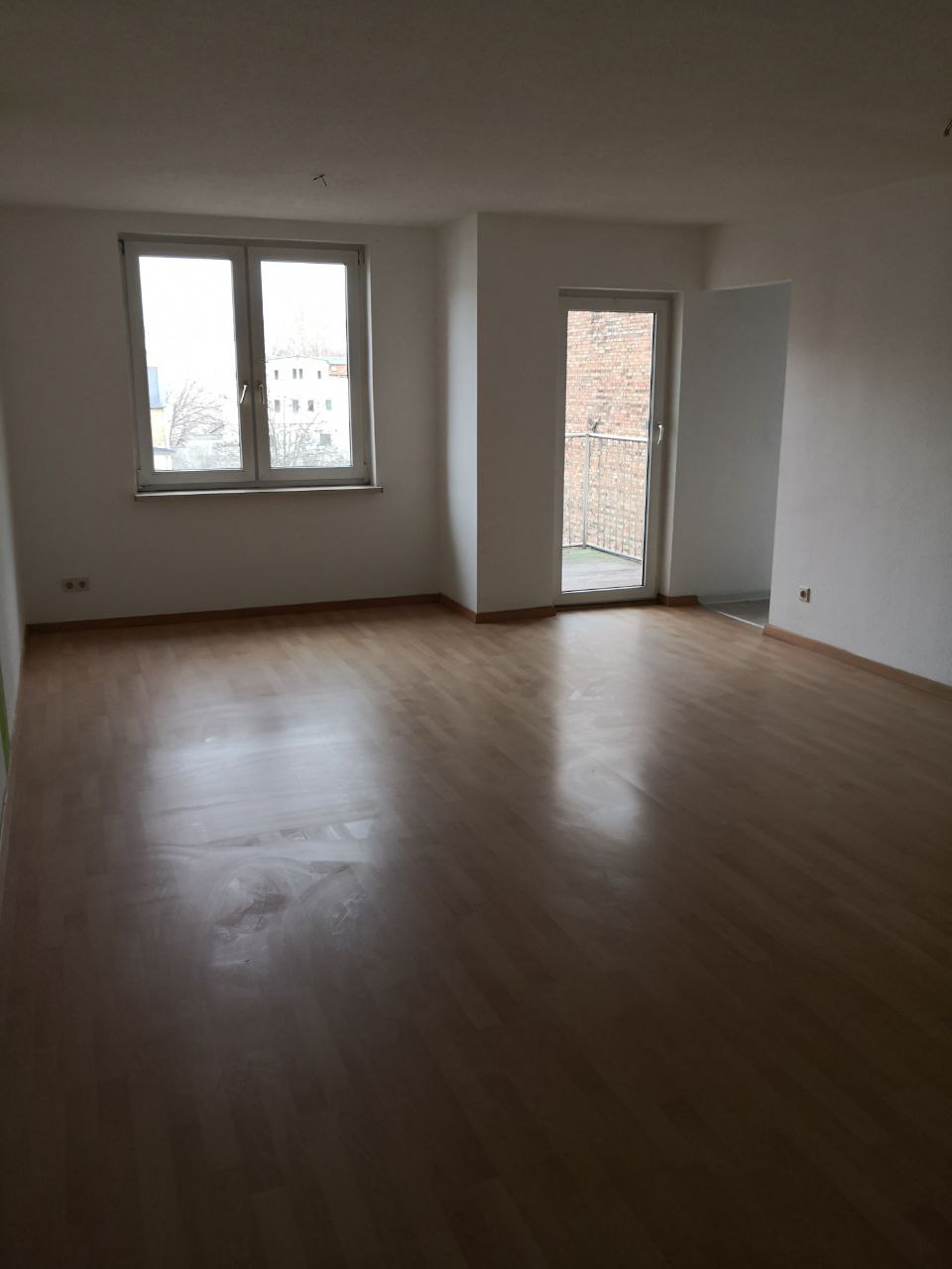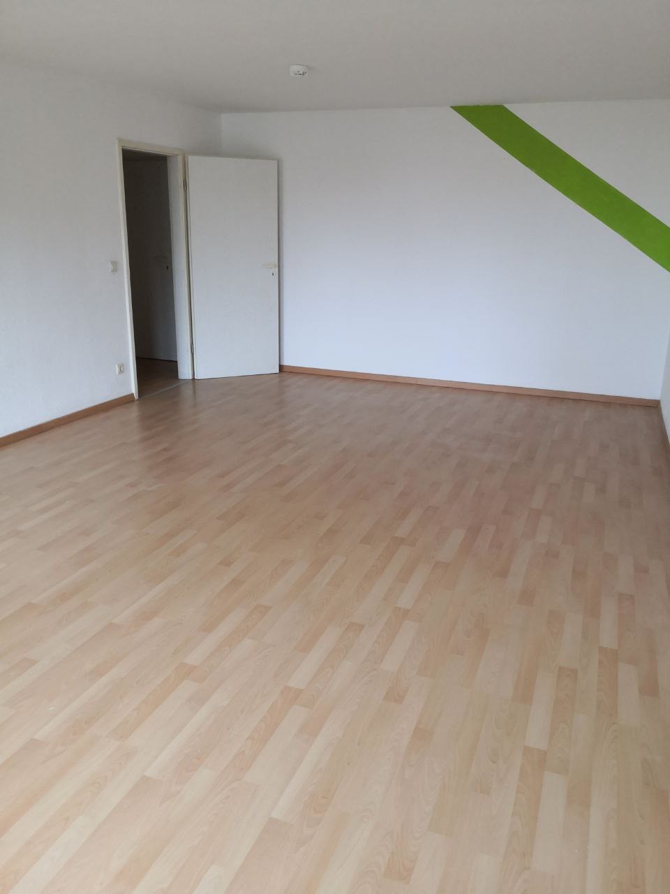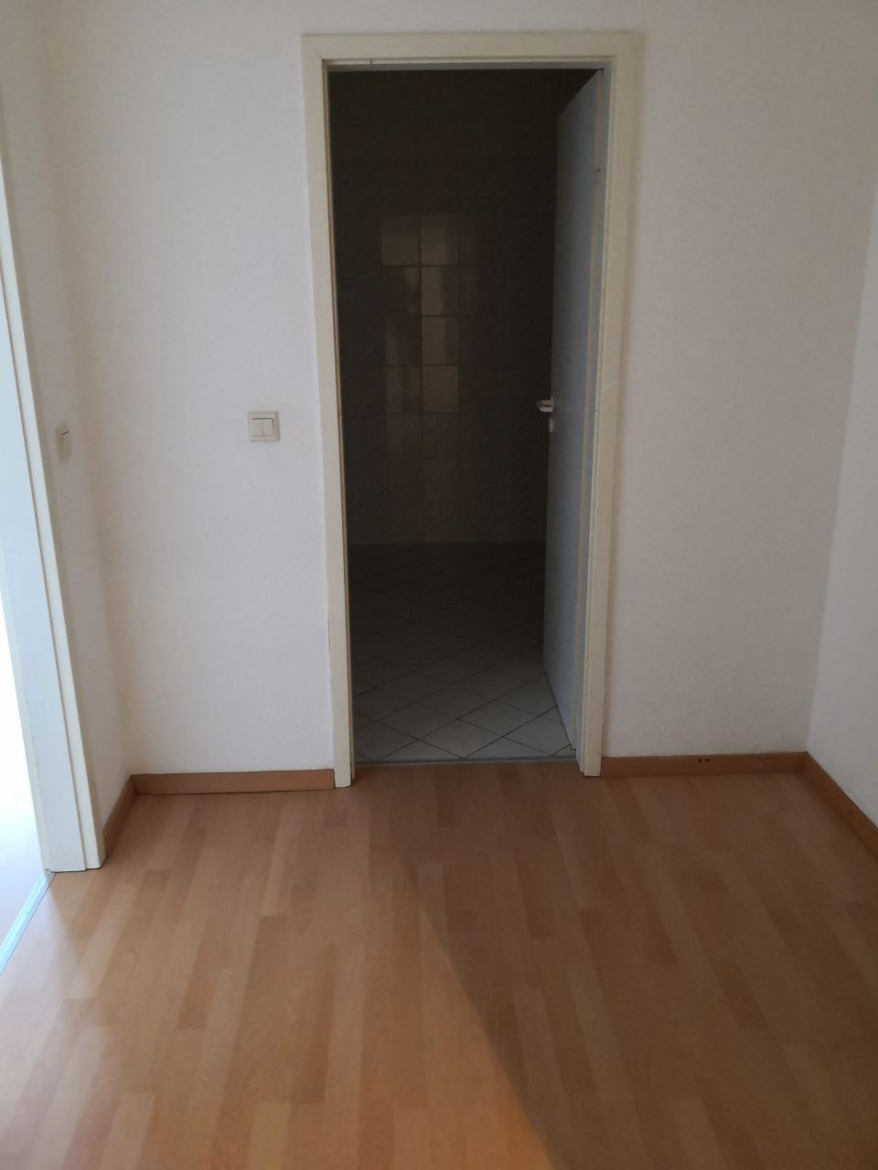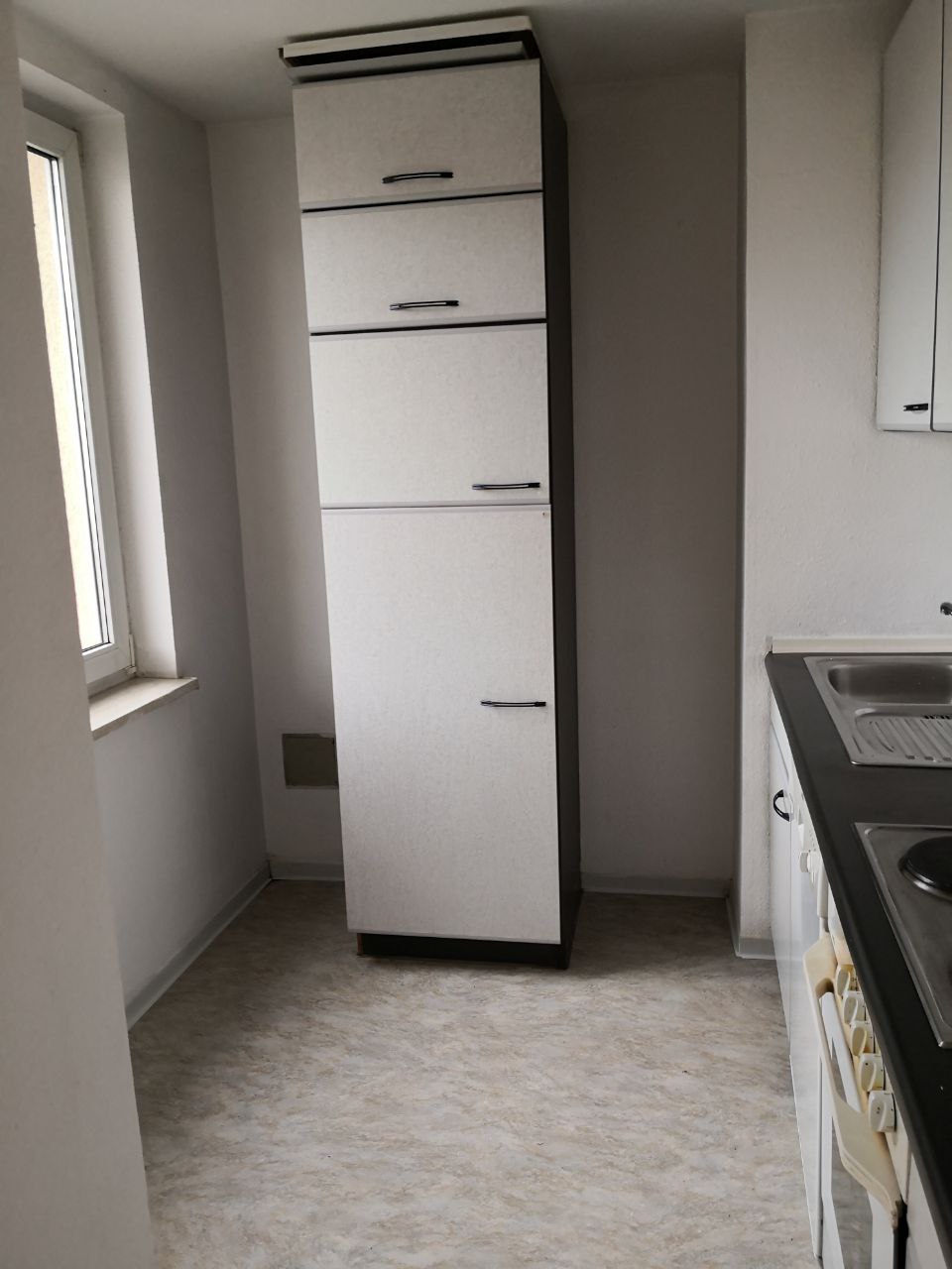 Die Wohnung verfügt über Laminatböden in den Wohnräumen, PVC in der innenliegenden Küche sowie Fliesen im Bad. Die Küche ist separat vom Wohnzimmer aus begehbar und mit einer Einbauküche inklusive Kühlschrank ausgestattet.