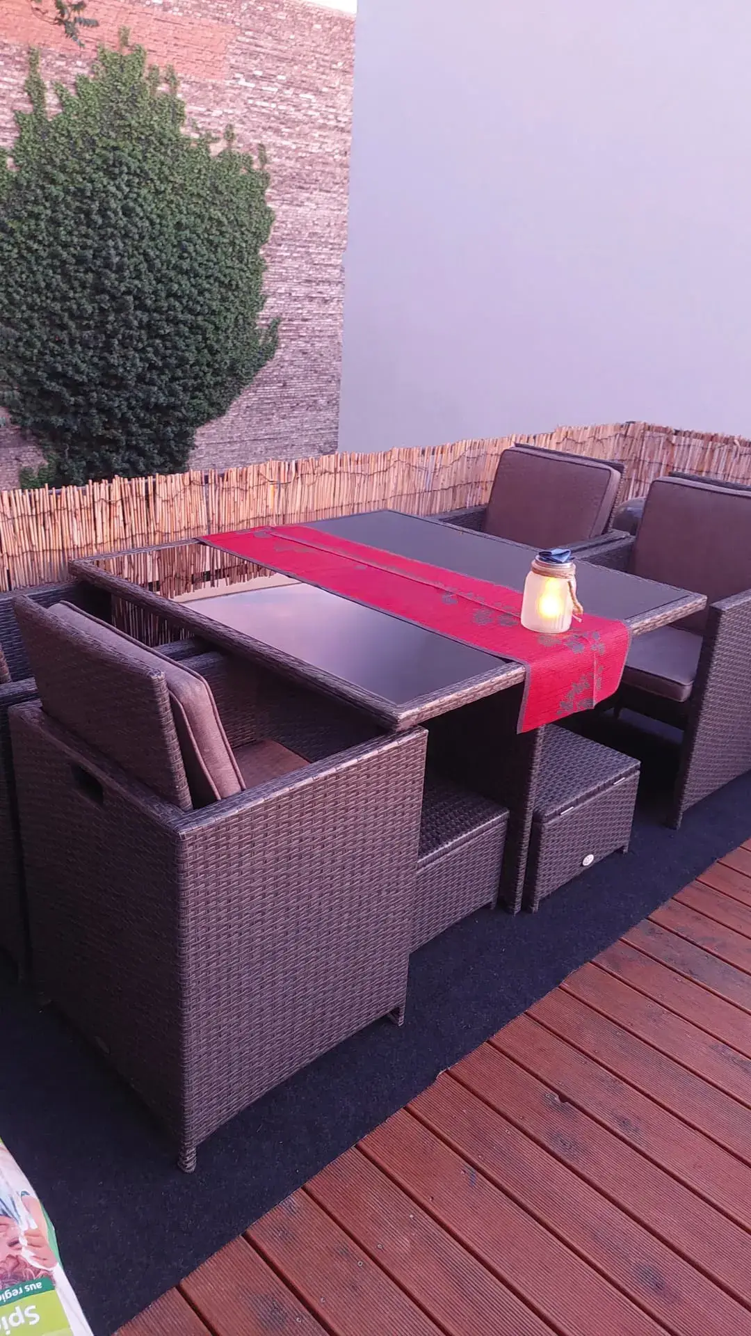 Auf Wunsch können passende Küchenmöbel sowie Terrassenmobiliar (Rattenmöbel, Palettensofa) und Hochbeete gegen eine Ablöse vom Vormieter übernommen werden.