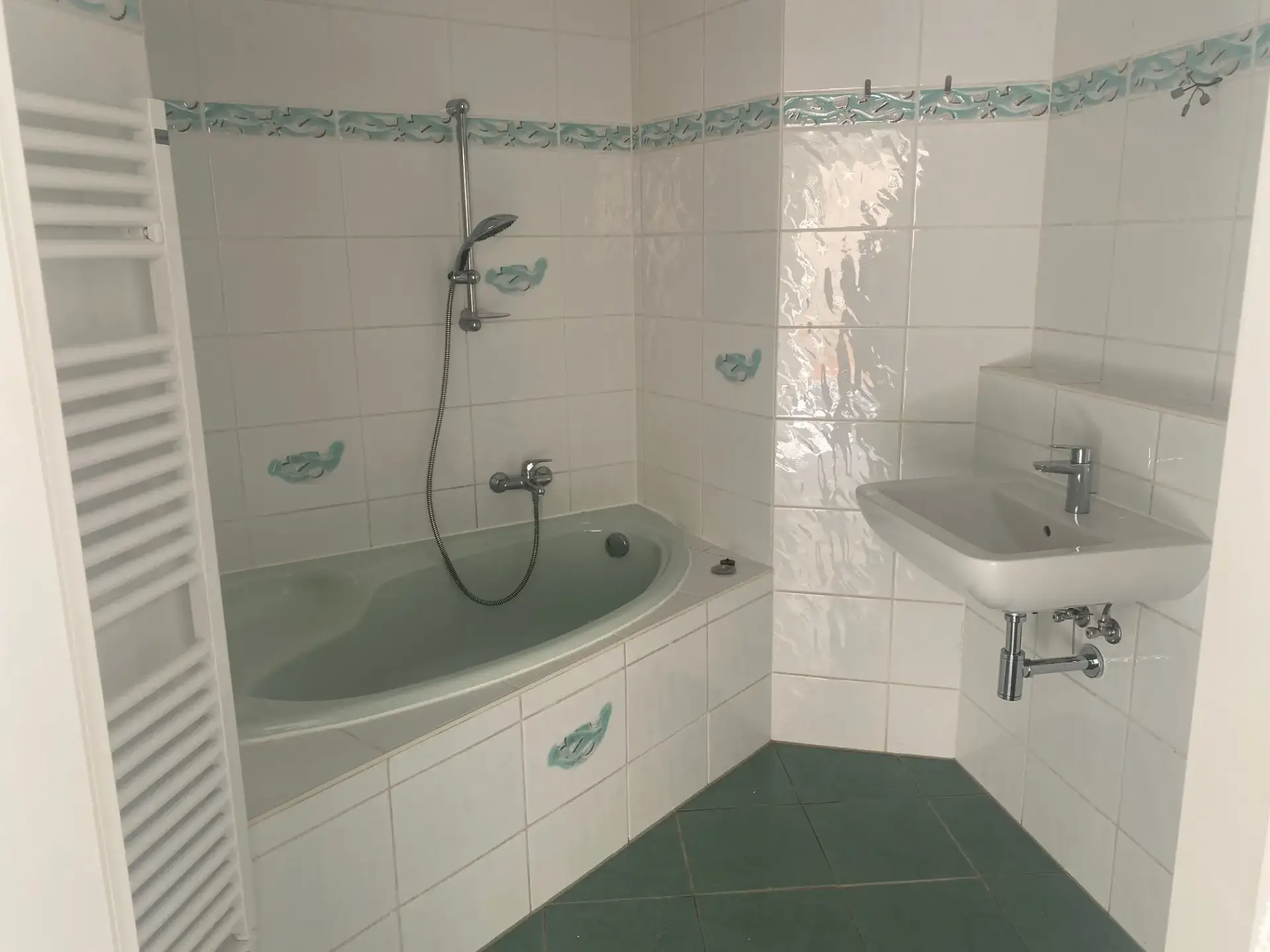 Balkon/ Terrasse, Küchenmöbel, Laminat, Fliesen, Handtuchheizkörper, Kabel TV, Wanne
