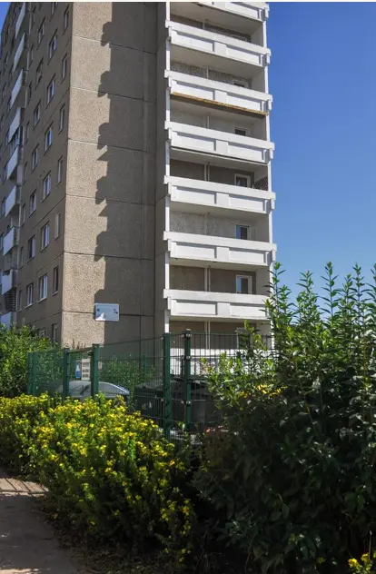 Die Liegenschaft liegt im Stadtteil Silberhöhe im Süden von Halle an der Saale, einem gewachsenen Wohngebiet mit rund 13.000 Einwohnern, geprägt von Plattenbauten aus den späten 1970er Jahren. Sie befindet sich in einer ruhigen Anwohnerstraße mit grünem Umfeld, unweit des Gesundheitszentrums Silberhöhe. Alle Einkaufsmöglichkeiten, Ärzte, Schulen und Kindertagesstätten sind fußläufig erreichbar. Dank der hervorragenden Anbindung an Straßenbahn, Bus und S-Bahn ist das Stadtzentrum schnell erreichbar, was die Lage besonders attraktiv für Bewohner macht.