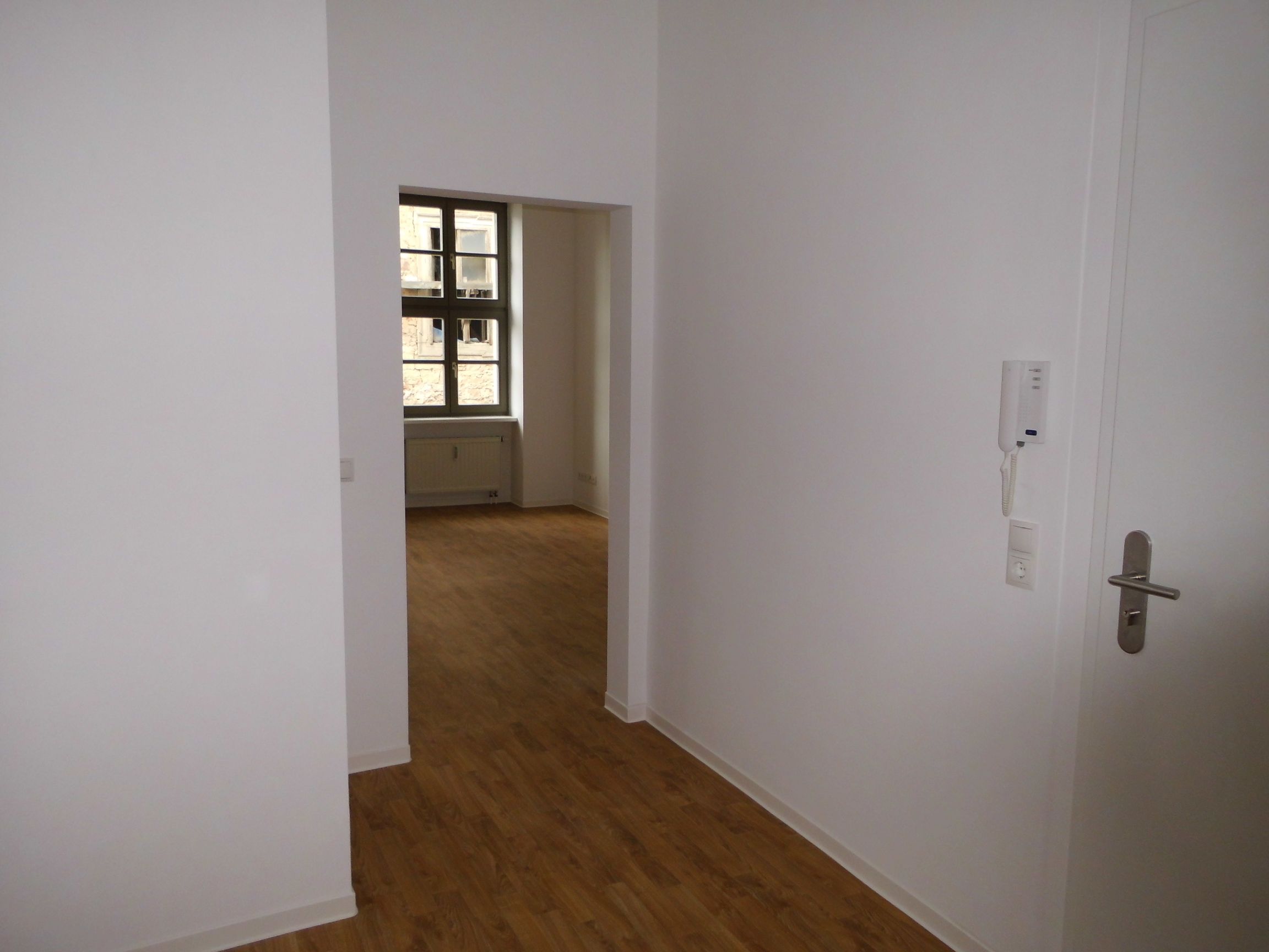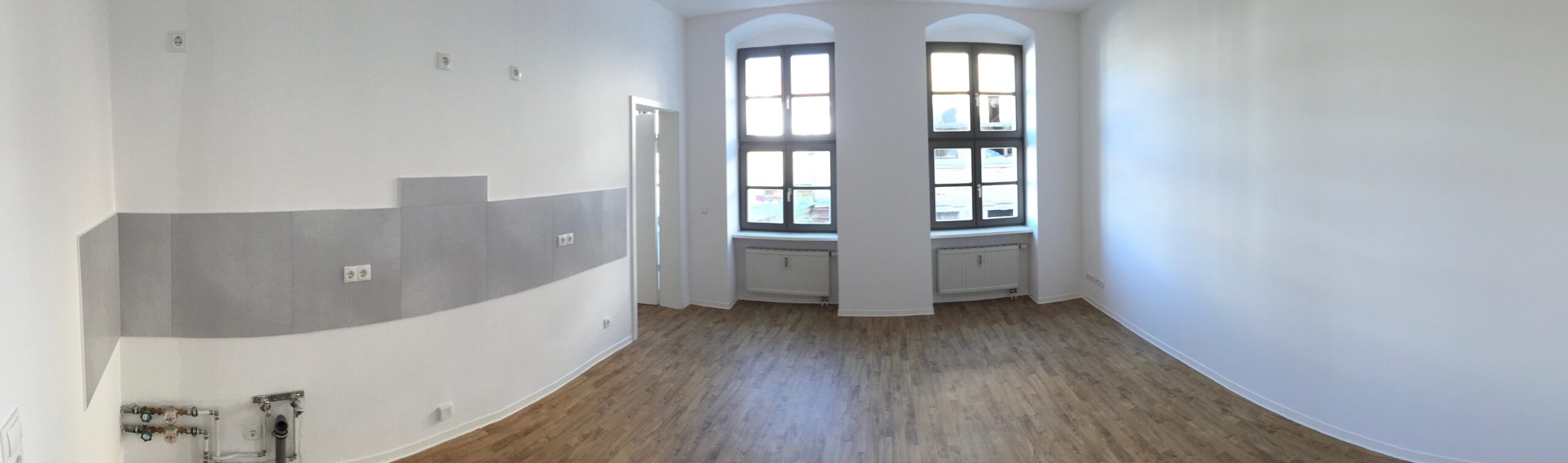 Die Wohnung überzeugt mit modernen PVC-Böden in ansprechender Parkettoptik. Das innenliegende Duschbad ist hochwertig gefliest und zeitlos gestaltet. Weiße Innentüren sowie gespachtelte, weiß gestrichene Wände unterstreichen den hellen und gepflegten Gesamteindruck. Große Fensterflächen sorgen zudem für viel Tageslicht und eine freundliche Wohnatmosphäre.