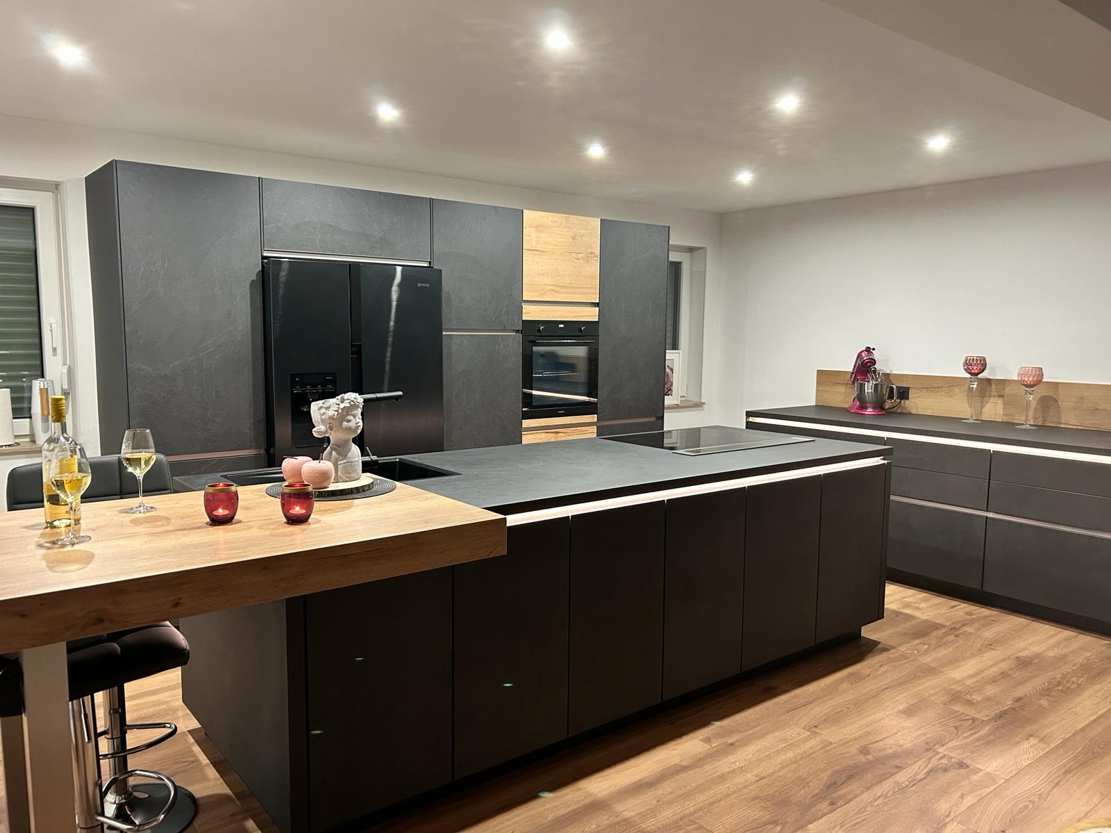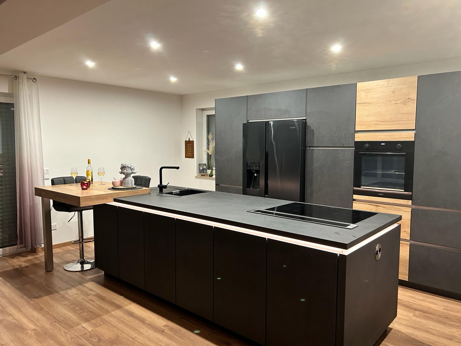 Herzstück des Hauses ist der großzügige Wohn- und Essbereich – ein einladender Lebensmittelpunkt mit viel Raum für gemeinsame Stunden mit Familie und Freunden. Die hochwertig ausgestattete Einbauküche wurde maßgefertigt und harmonisch in das Wohnkonzept integriert; sie verbleibt im Haus und ist bereits im Angebot enthalten.