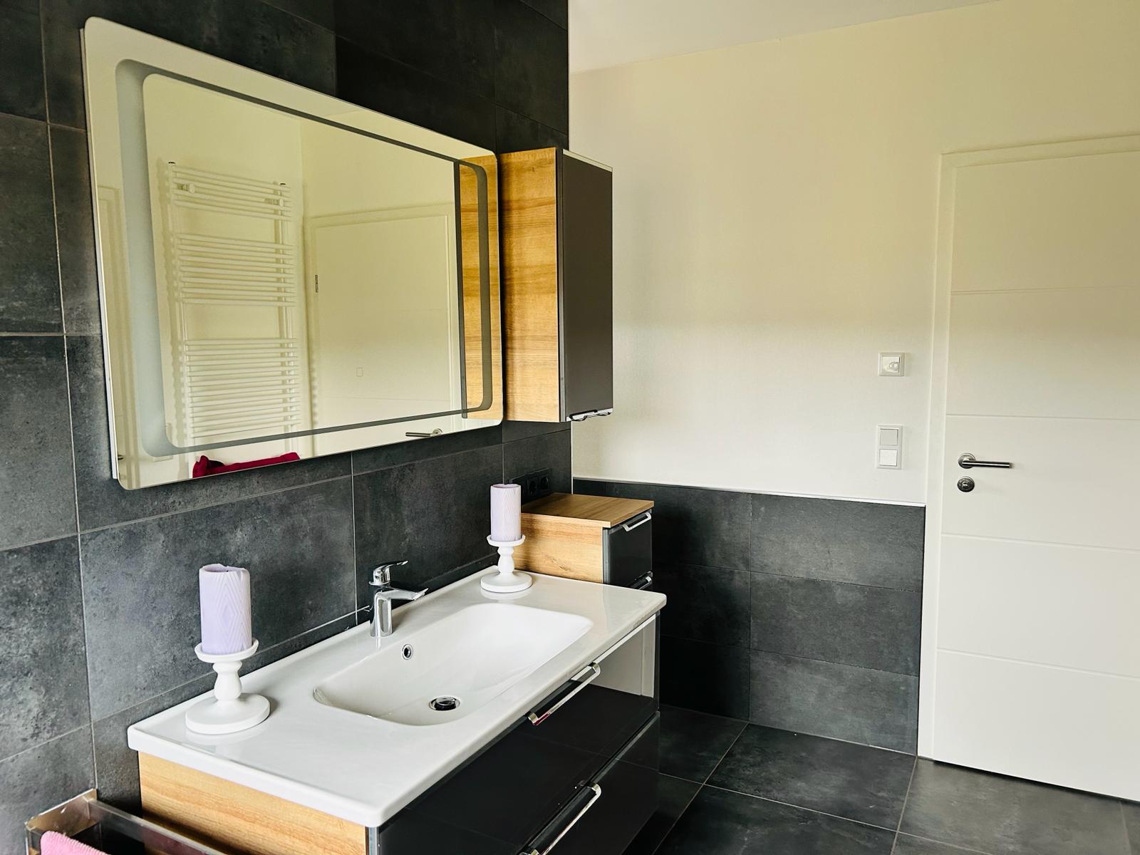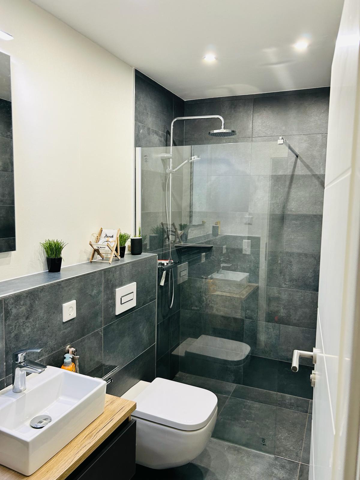 Sowohl das Badezimmer im Erdgeschoss als auch das großzügige Bad im Obergeschoss überzeugen mit modernen, hochwertigen Fliesen und jeweils einer komfortablen bodengleichen Dusche – stilvoll, zeitgemäß und funktional zugleich.