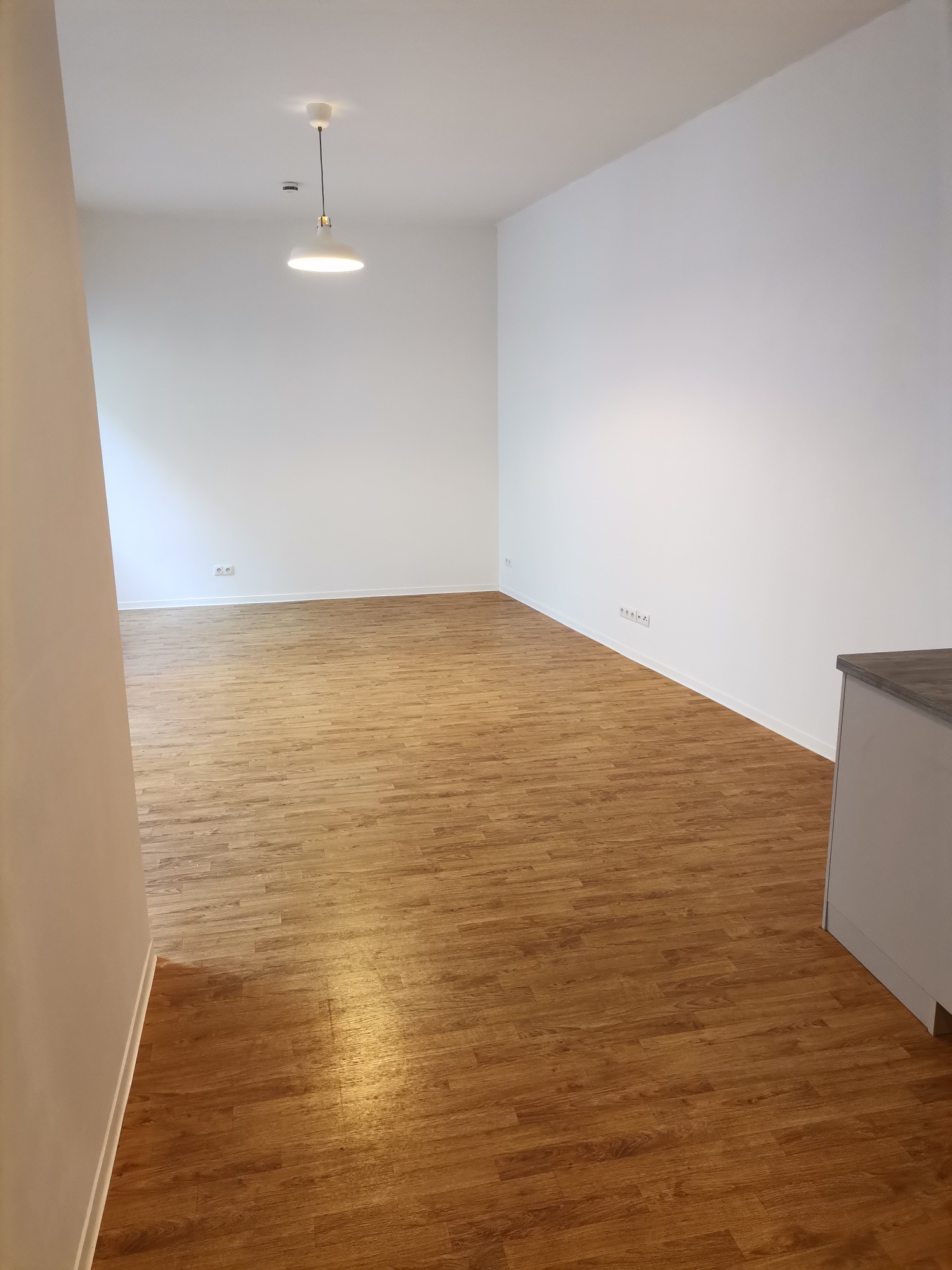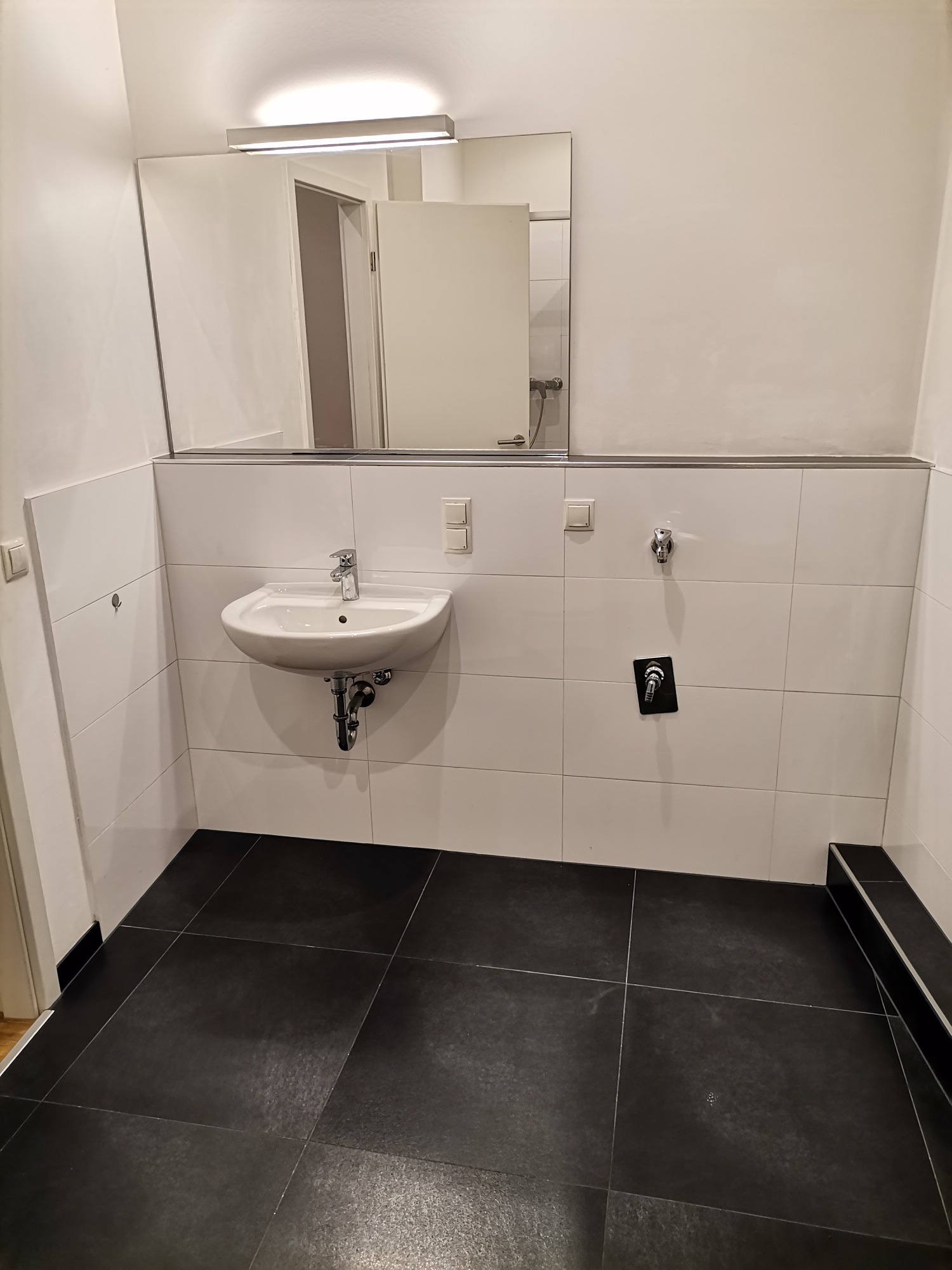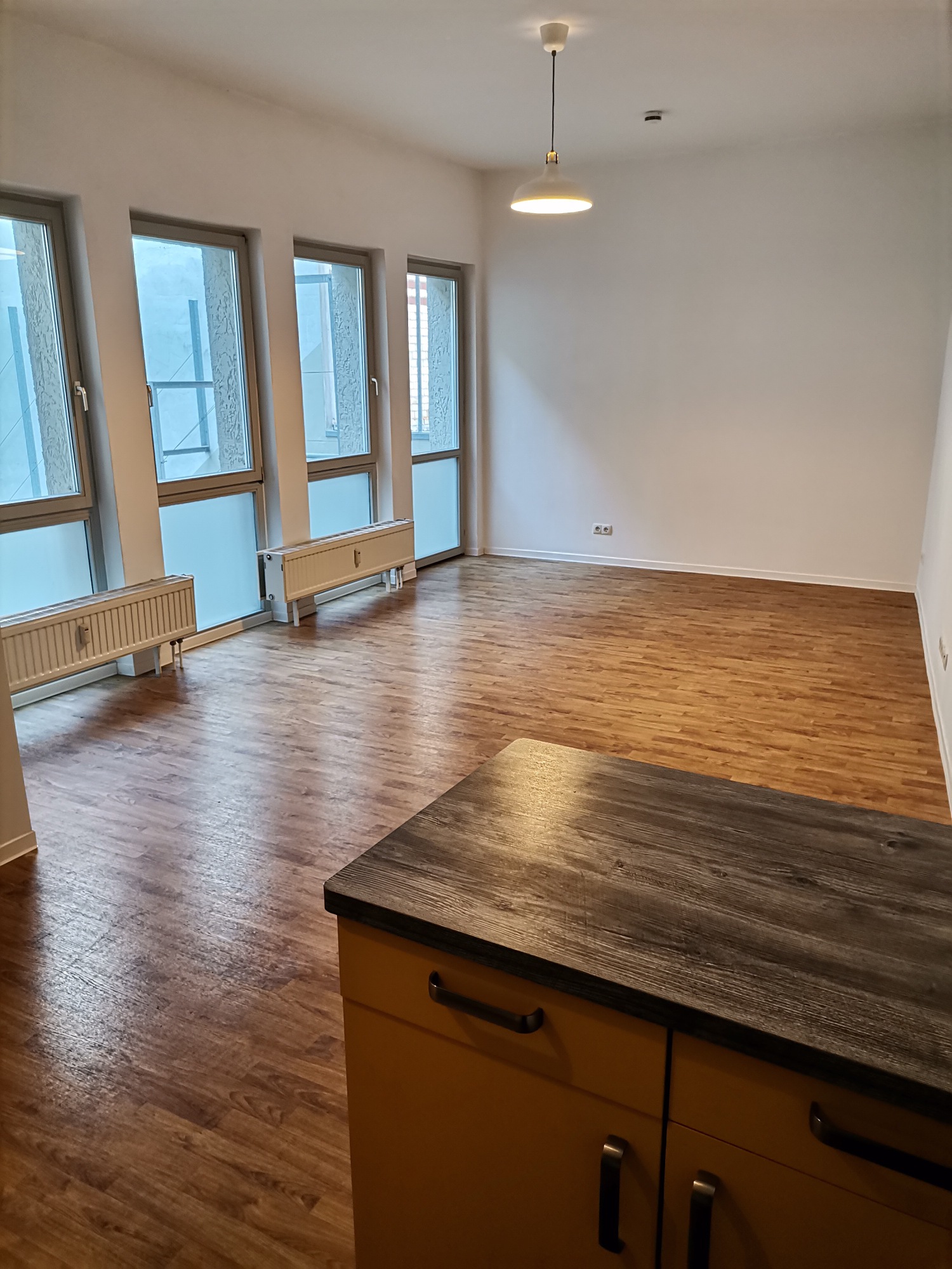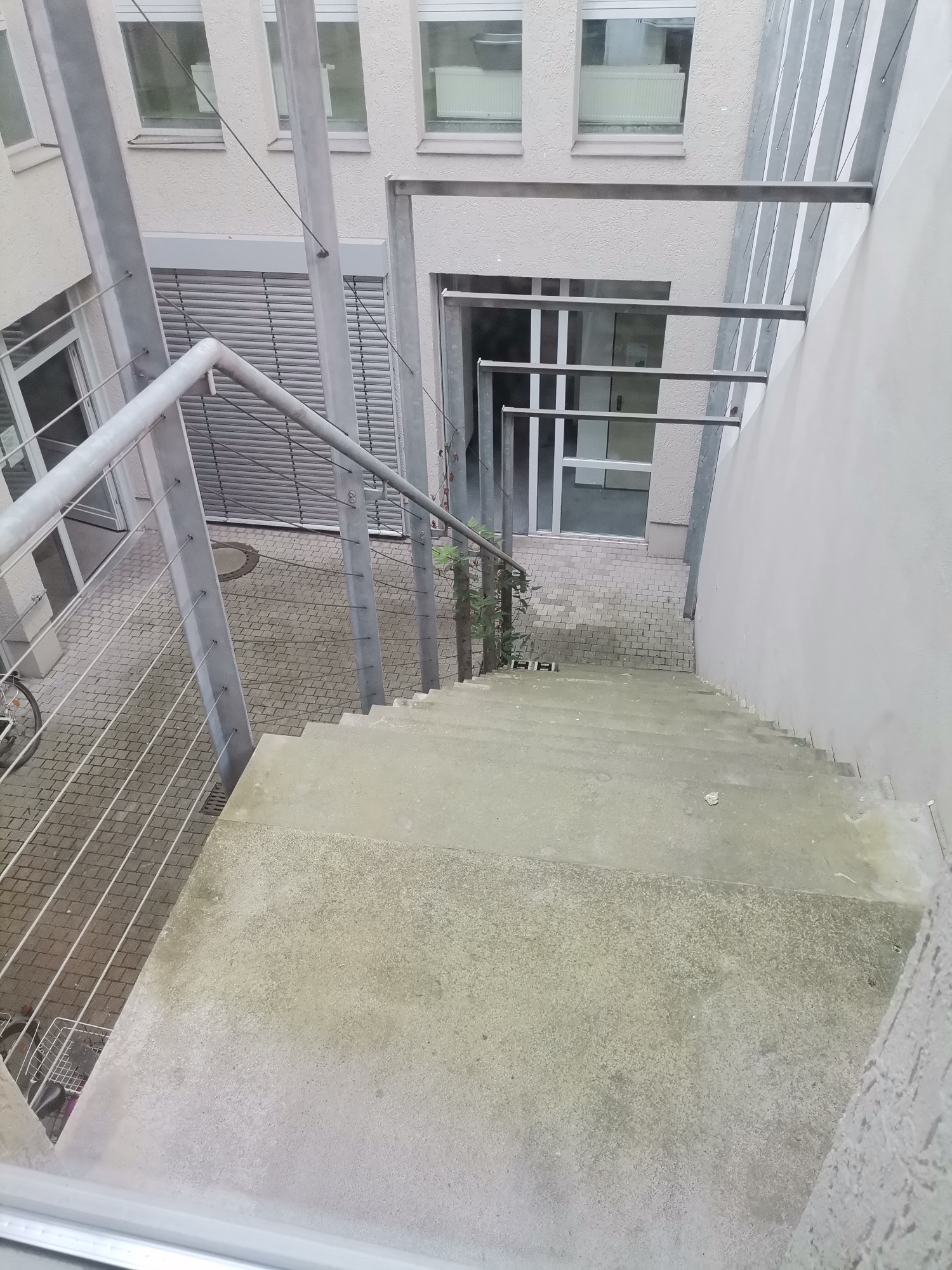 Das Apartment wurde in der Vergangenheit komplett umgebaut, modernisiert und instand gesetzt. Die Fußböden sind mit PVC in Parkettoptik verlegt und das Bad mit Dusche ist hochwertig gefliest und mit einem Handtuchheizkörper ausgestattet. Alle Türen wurden erneuert, die Wände gespachtelt und geweißt. Im Wohnbereich befindet sich eine offene Küche mit Einbauküche. In der Wohnfläche sind die Gemeinschaftsflächen (grün dargestellt) eingerechnet. Am Apartment befindet sich eine Treppe zum Innenhof, welche auch als Sitzfläche bzw. Balkon genutzt werden kann.