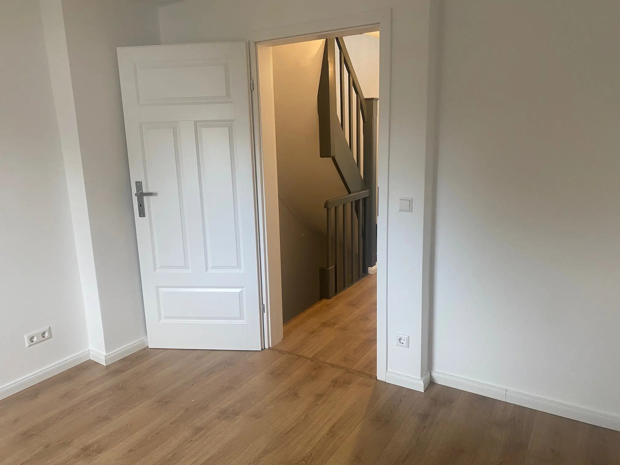 Hochwertige Vinyl- und Fliesenböden sorgen für ein zeitgemäßes Wohngefühl, während im Erdgeschoss eine angenehme Fußbodenheizung zusätzlichen Komfort bietet. Sämtliche Wände sind mit Raufaser tapeziert und frisch weiß gestrichen.